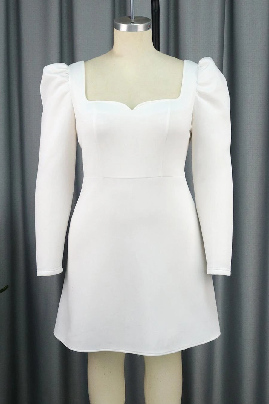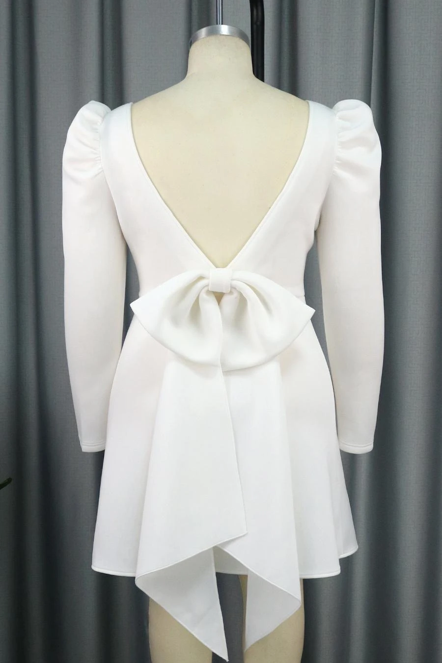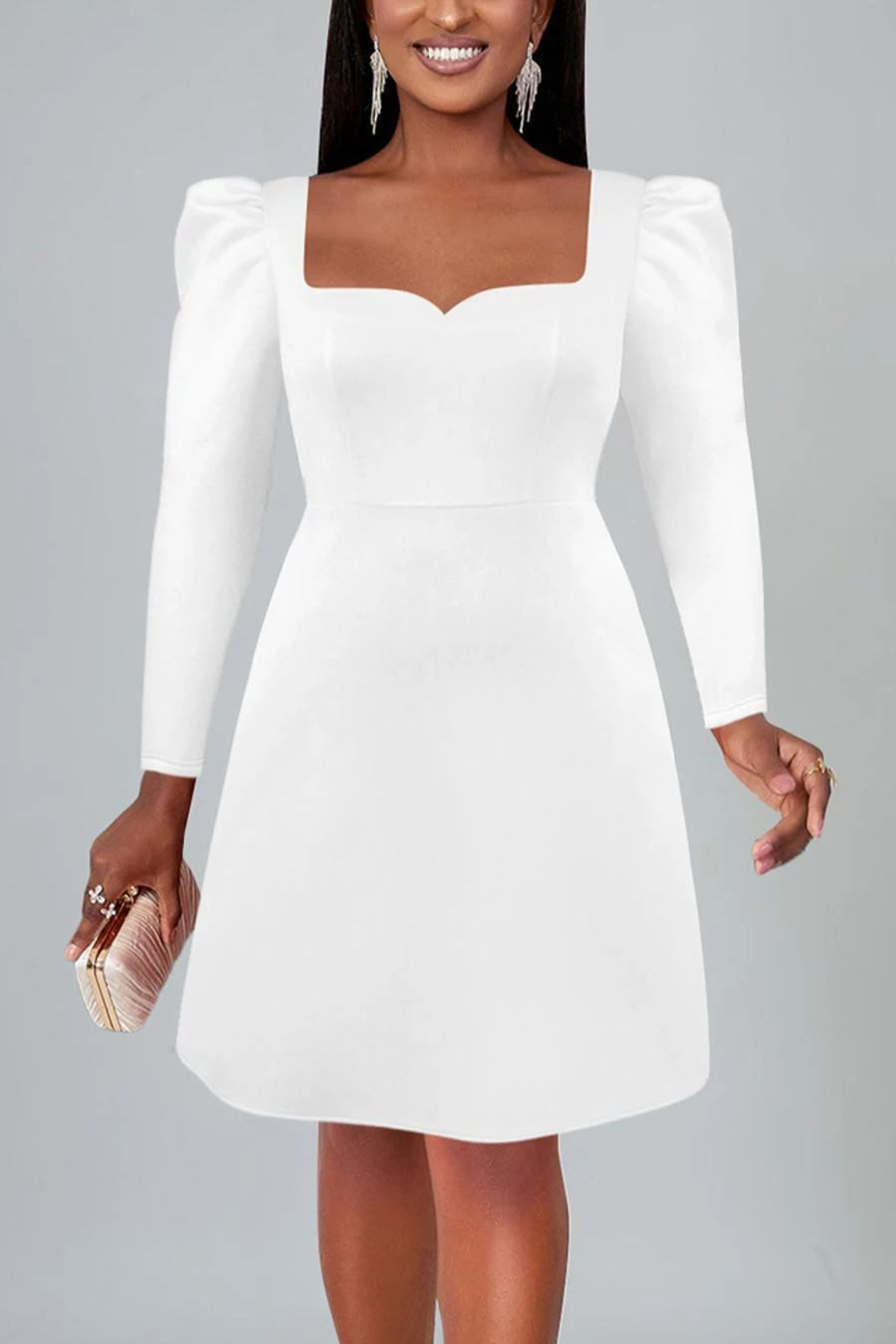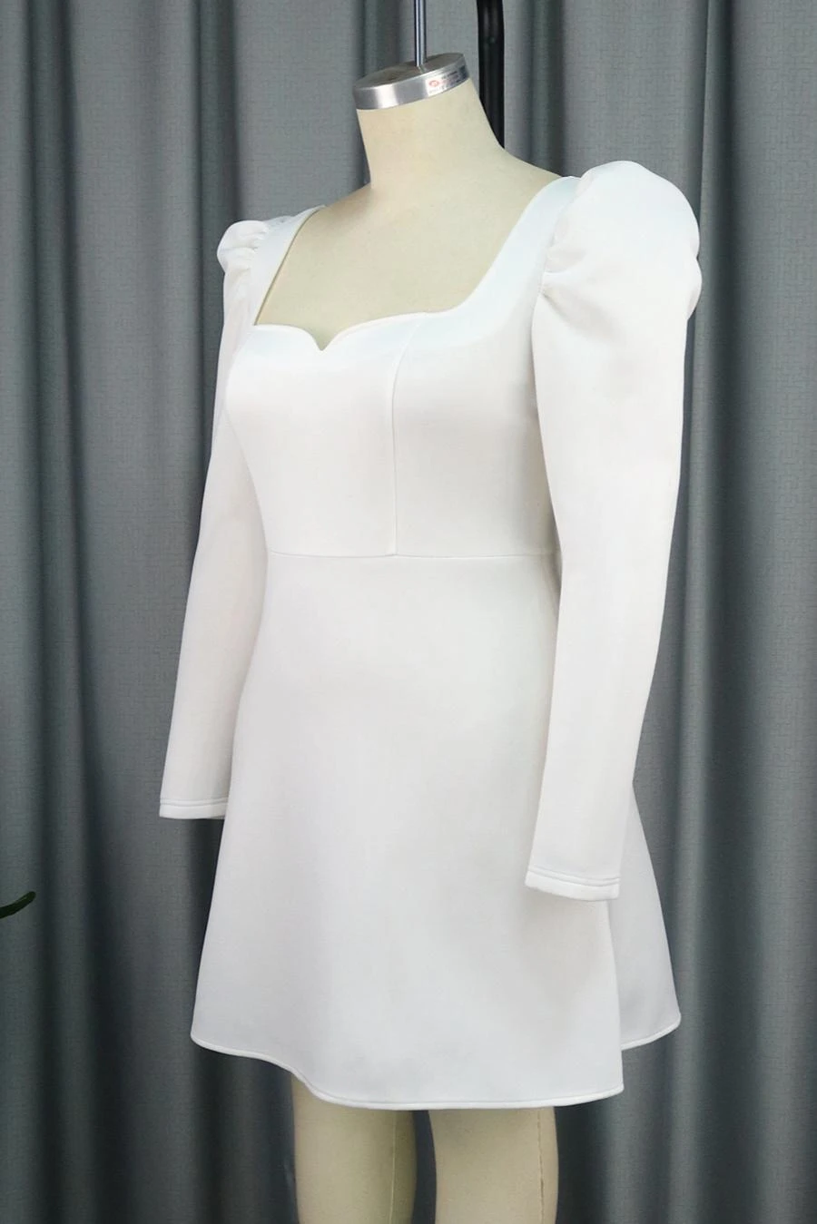 Sexy plus size slight stretch solid color square neck bow decor midi dress