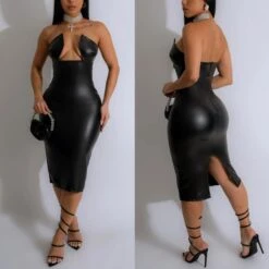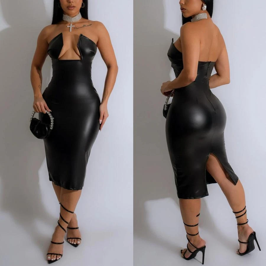 Sexy plus size slight stretch solid color tube design slit midi dress