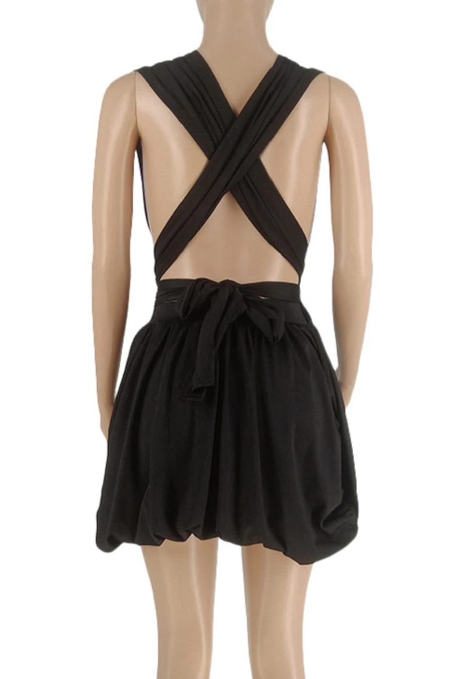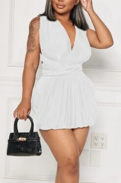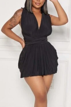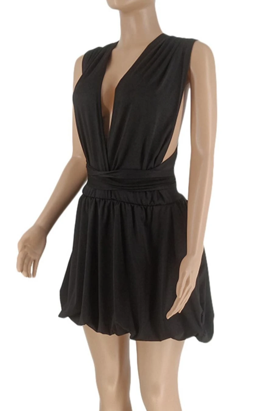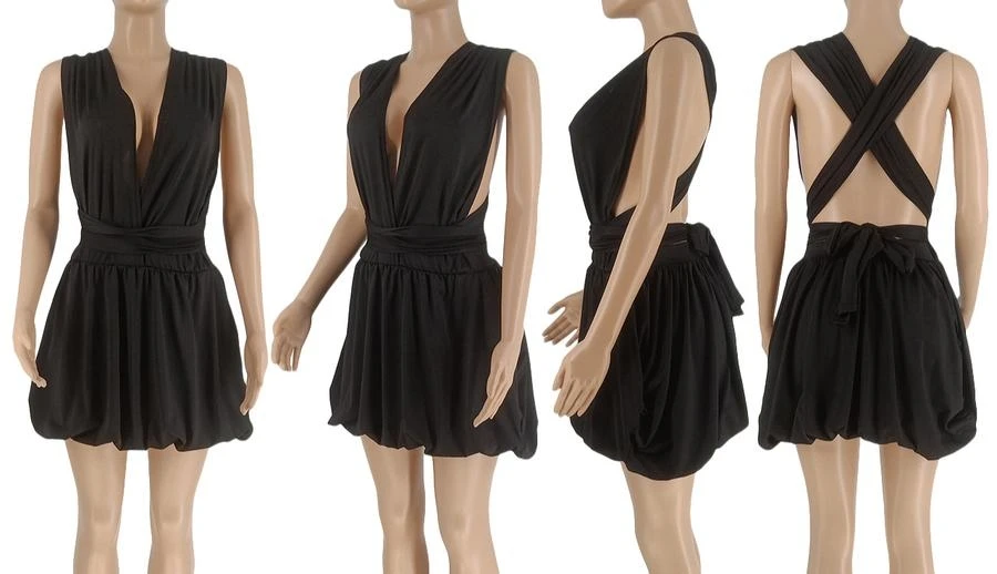 Sexy plus size slight stretch solid deep v neck backless mini dress