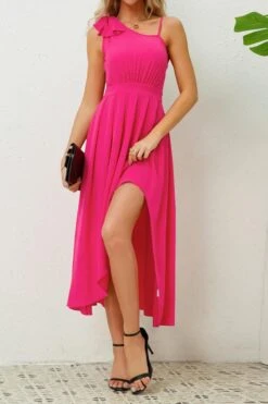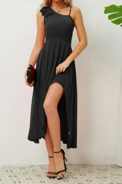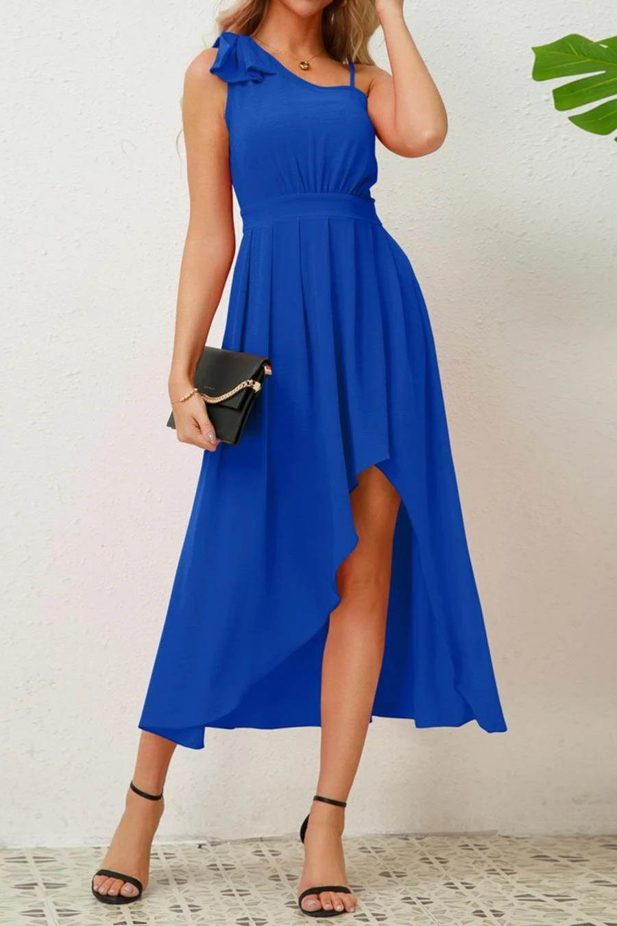 Sexy plus size slight stretch stylish sling irregular midi dress