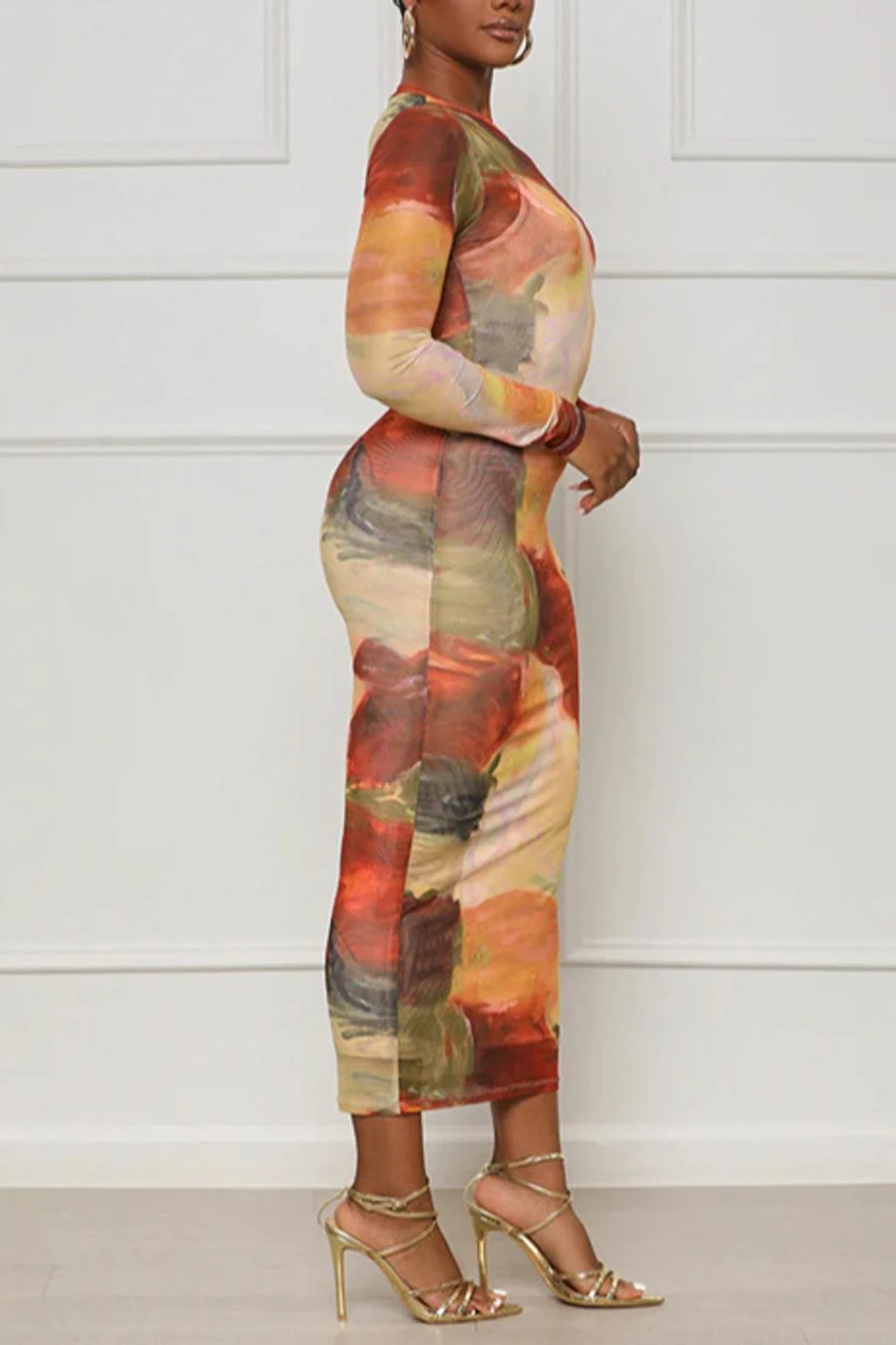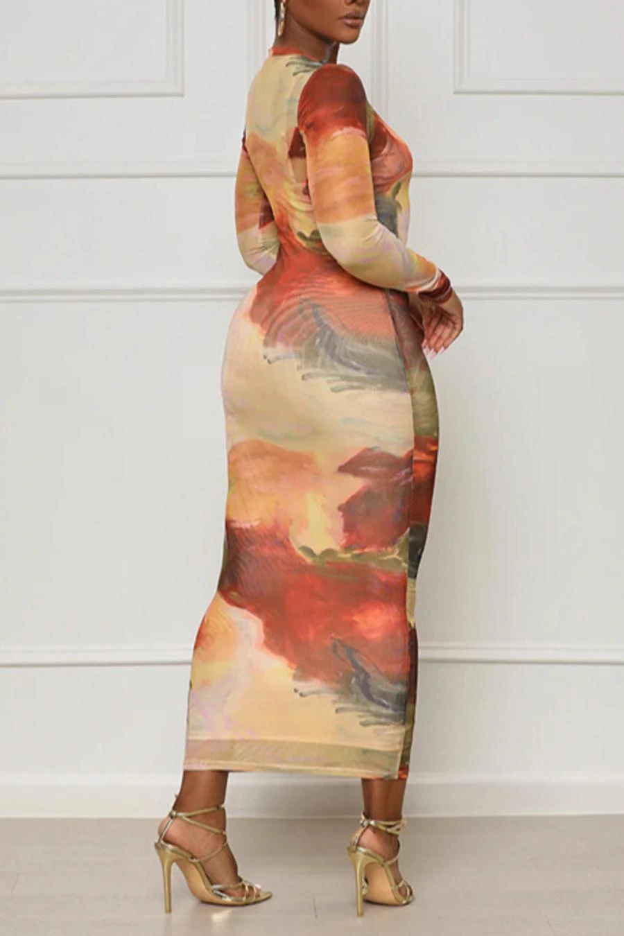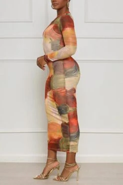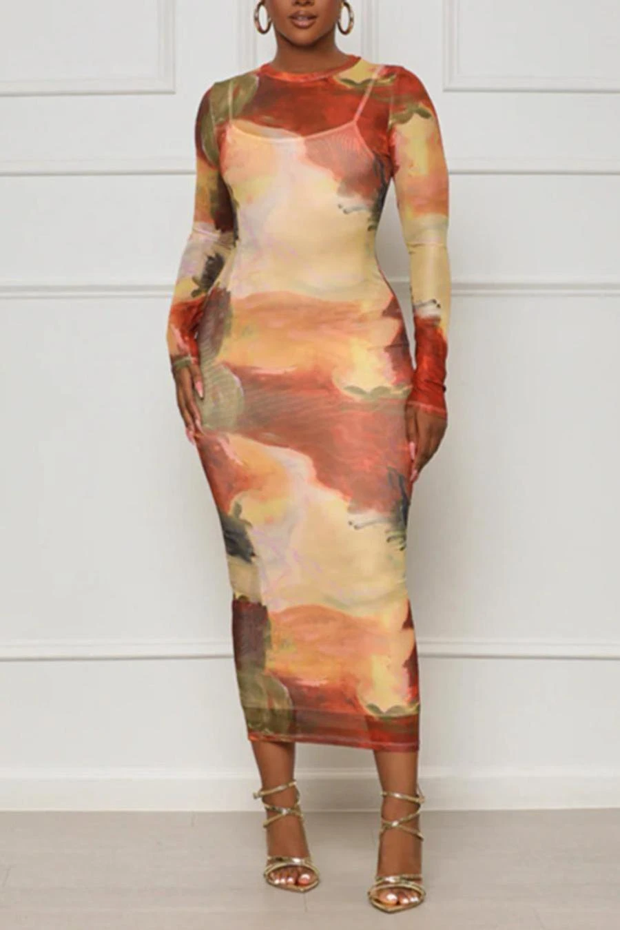Sexy plus size slight stretch tie-dye printed sling base layer midi dress sets