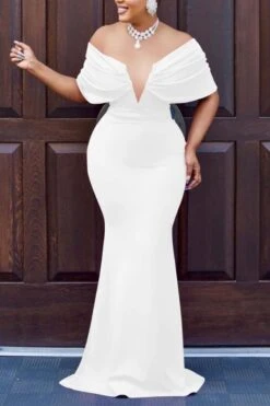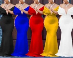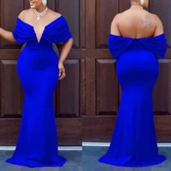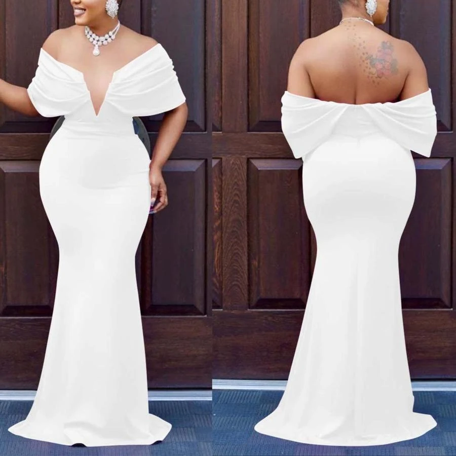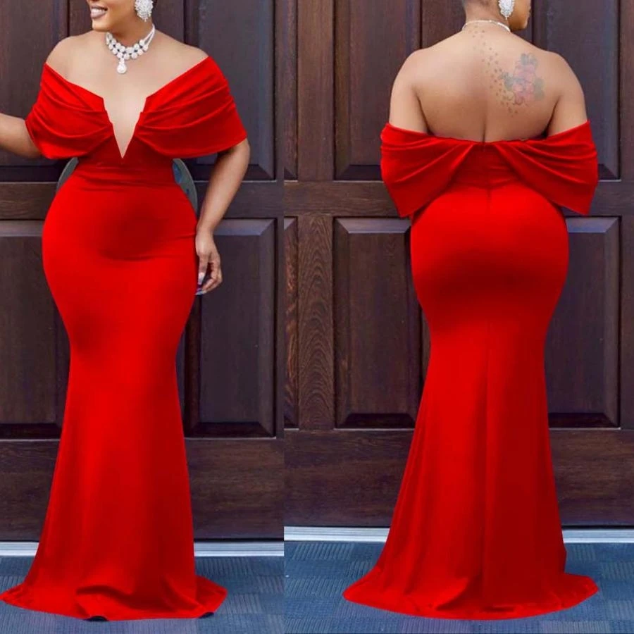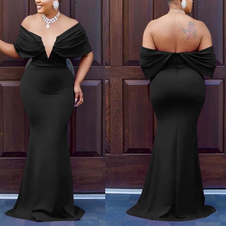 Sexy plus-size slight stretch v-neck backless slim maxi dress