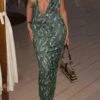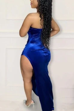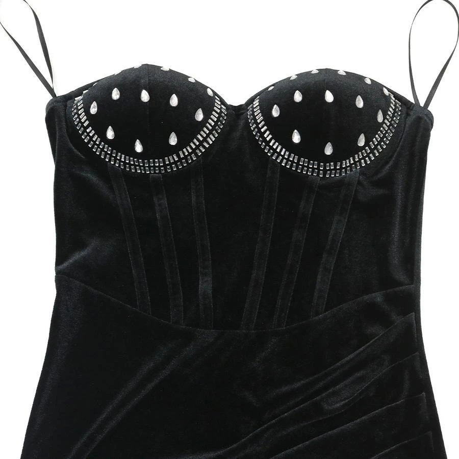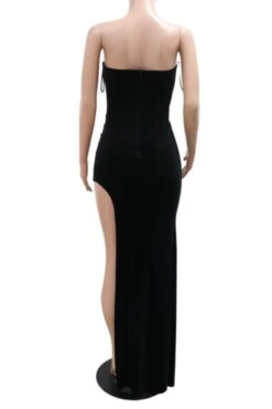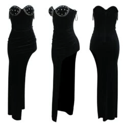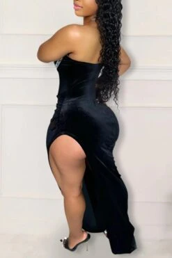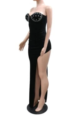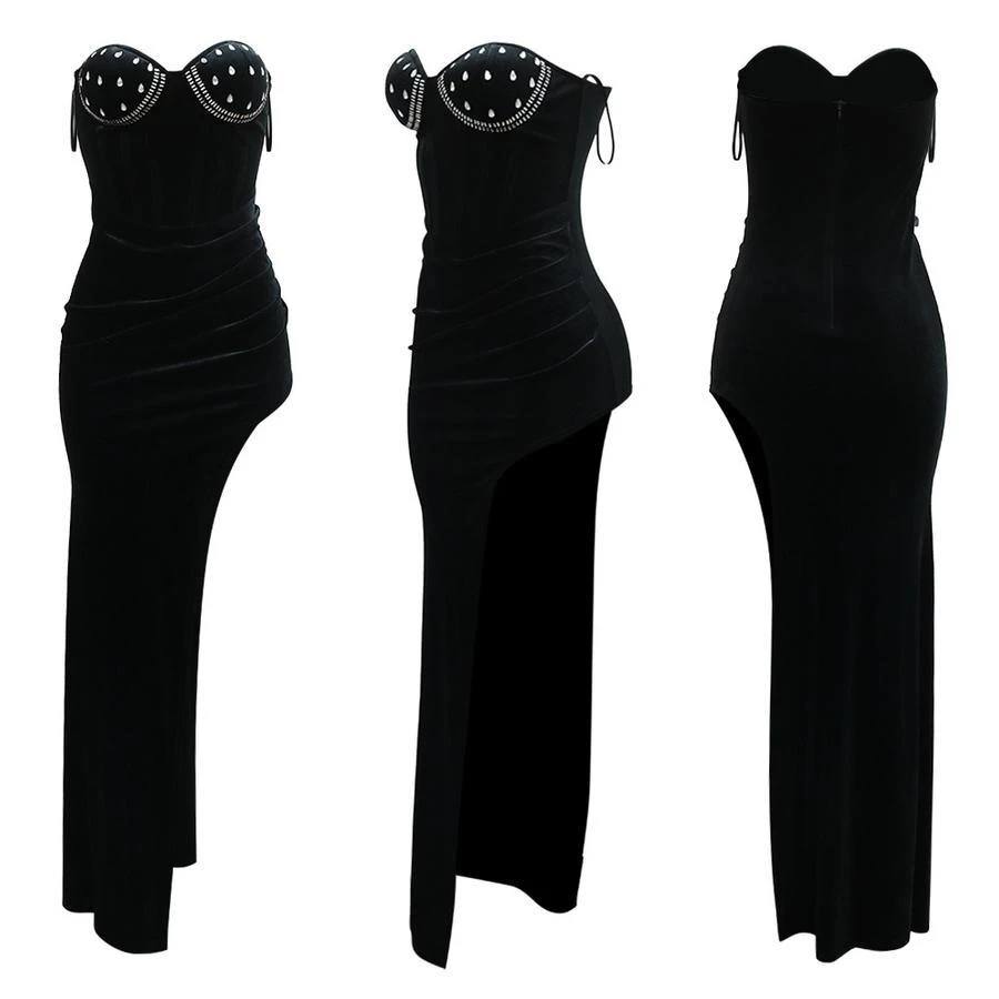 Sexy plus size slight stretch velvet rhinestone padded high slit maxi dress