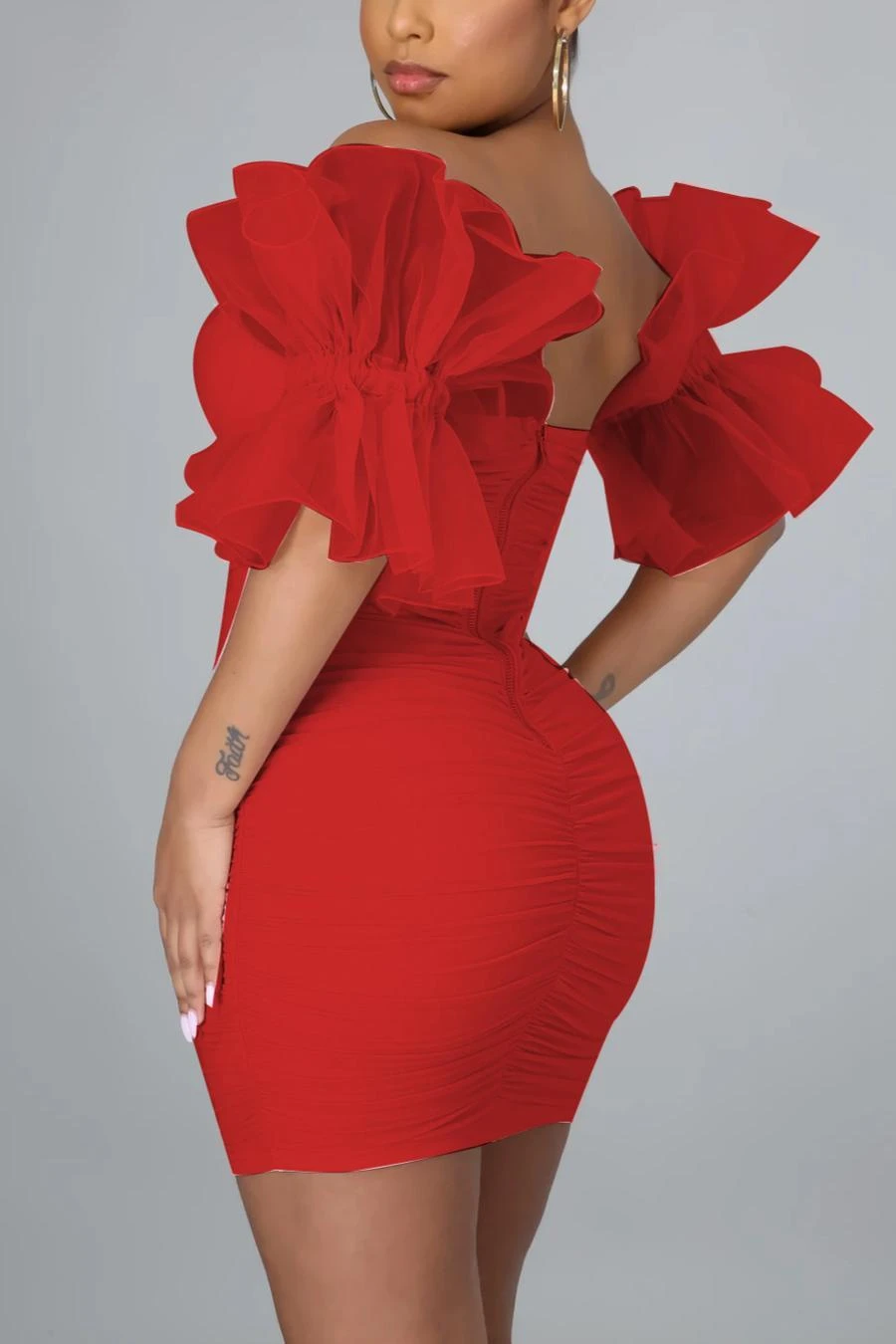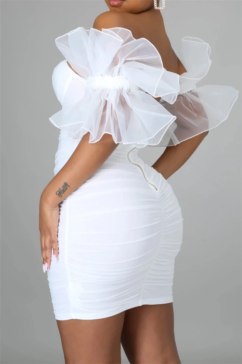 Sexy plus size stitching mesh off-shoulder zip-up slim dress new add colors
