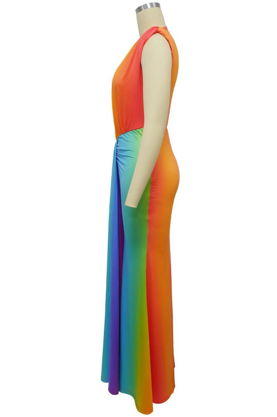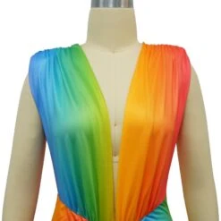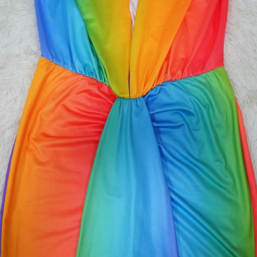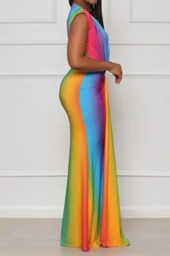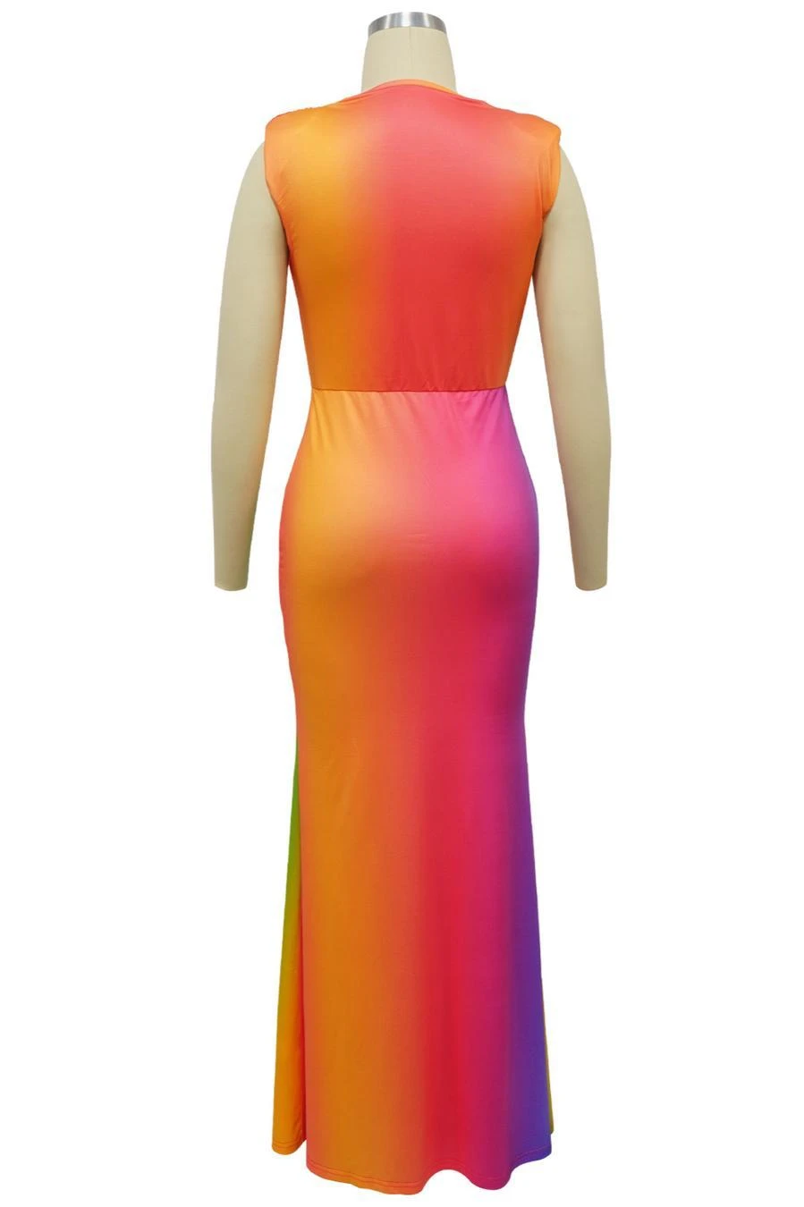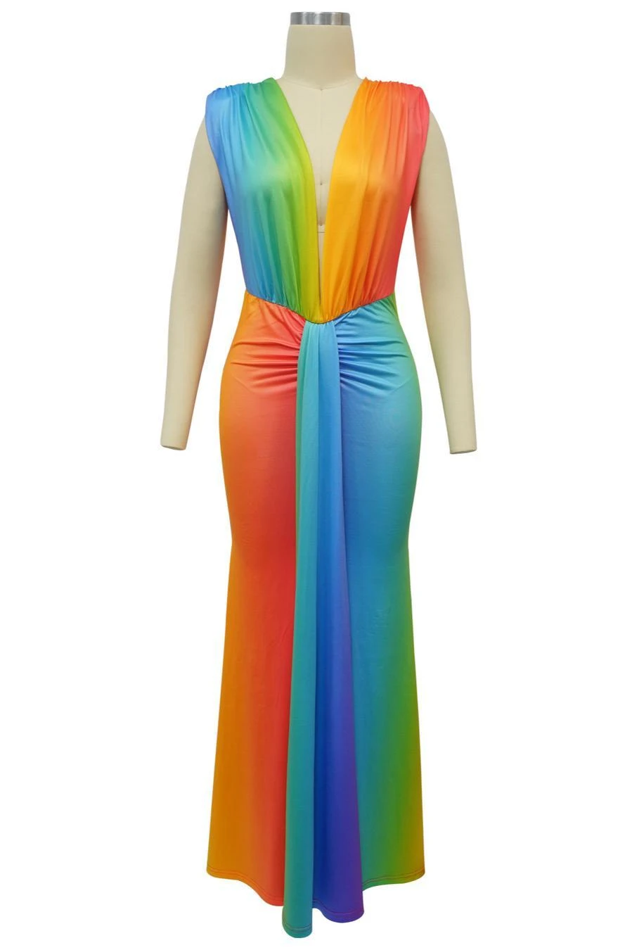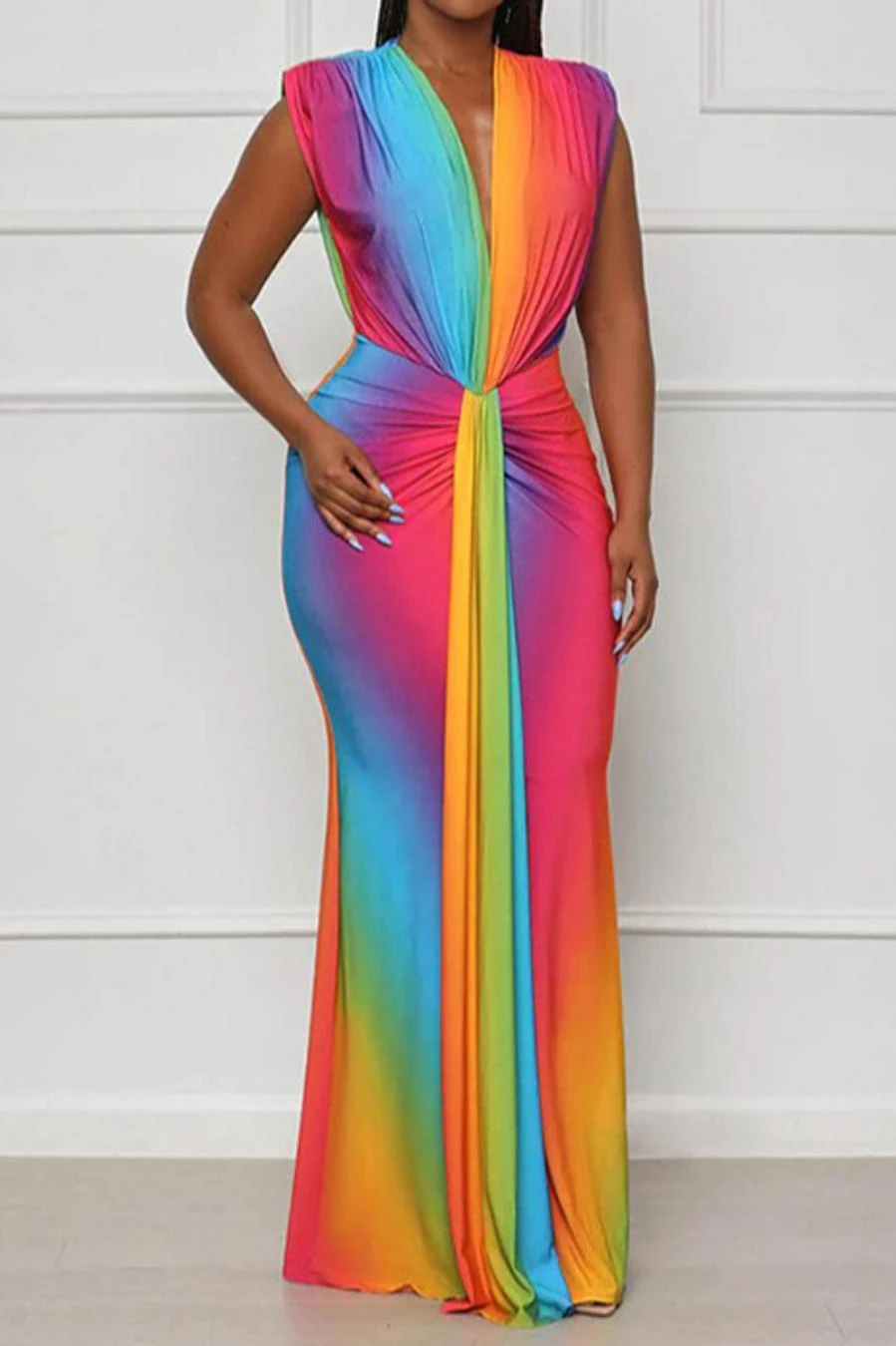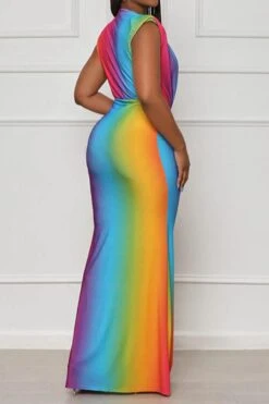 Sexy plus size stretch gradient color deep v with shoulder pads maxi dress