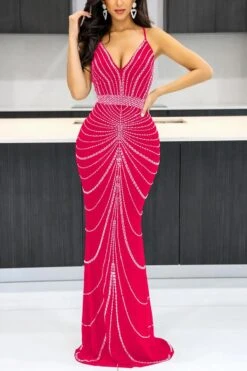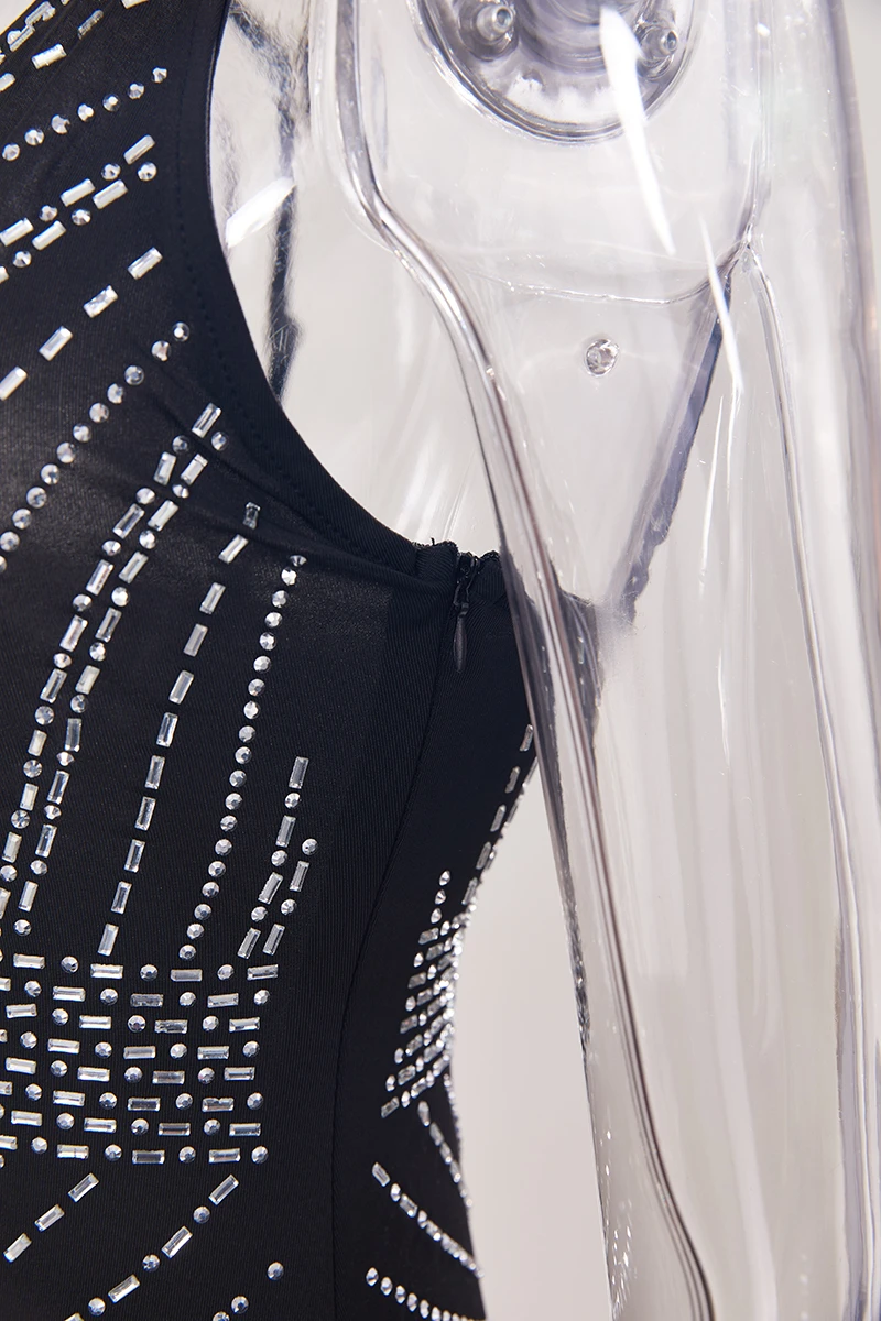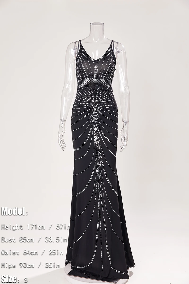 Sexy plus-size stretch rhinestone sling slim maxi dress AA015805