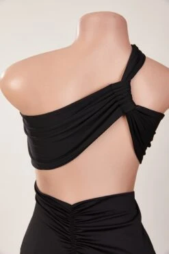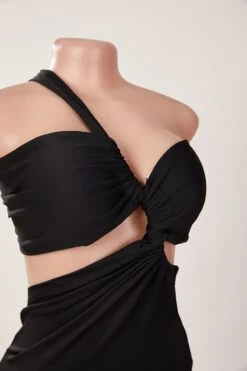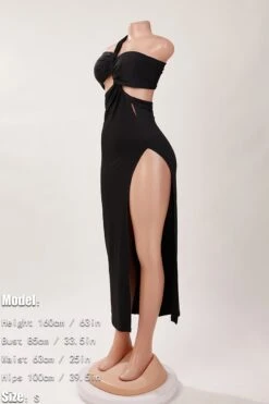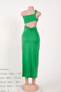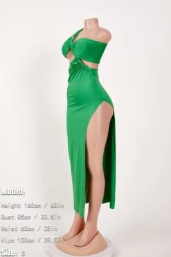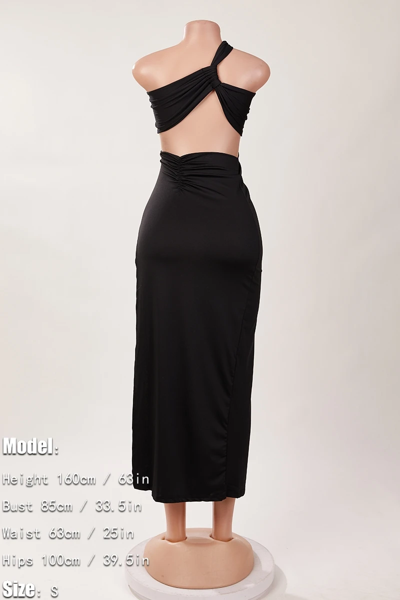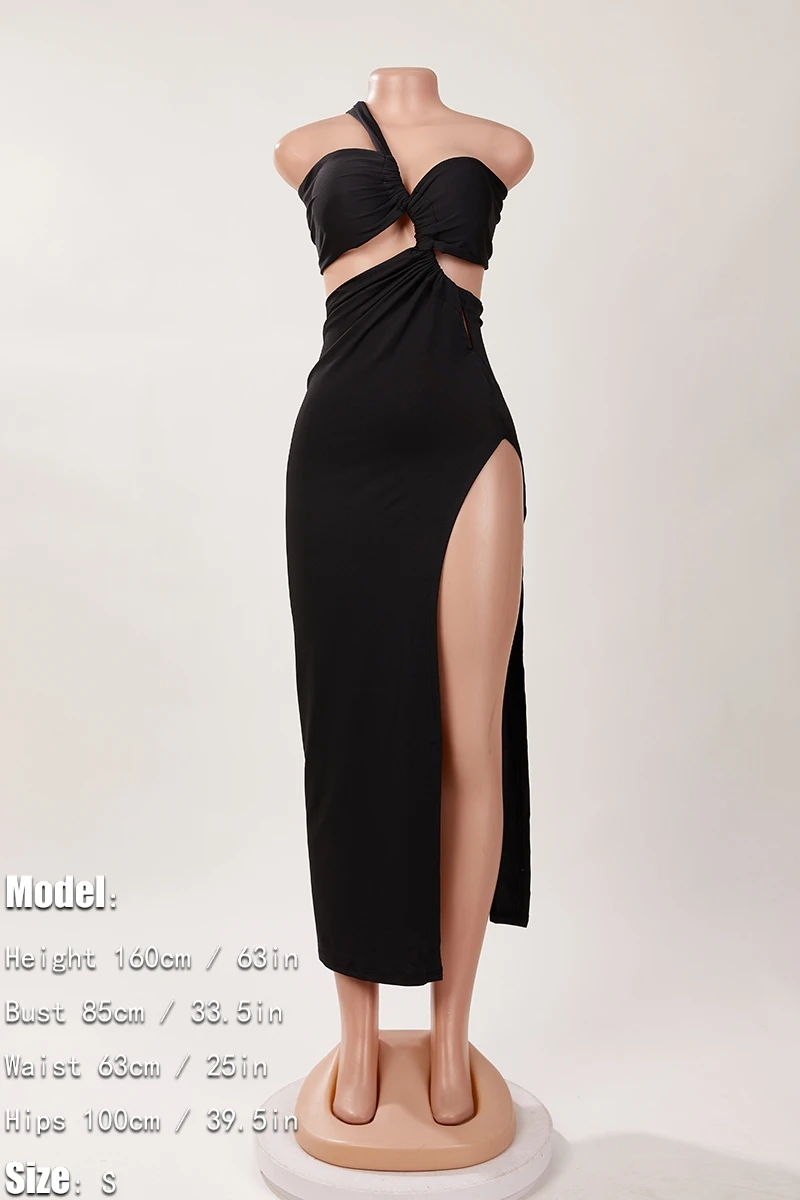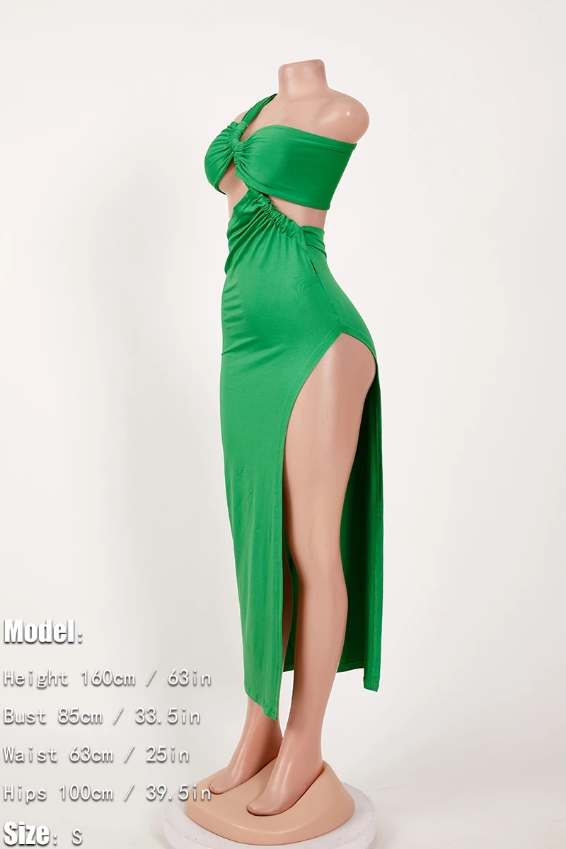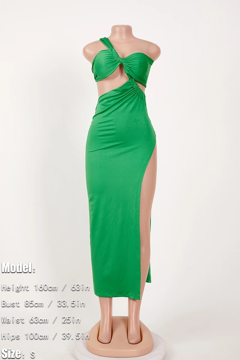 Sexy slight stretch 2 colors one shoulder hollow high split maxi dress