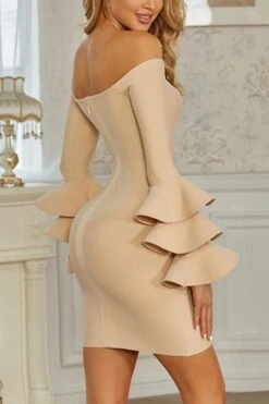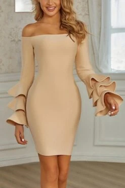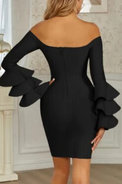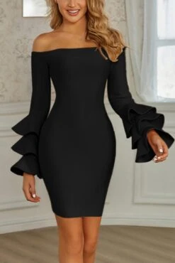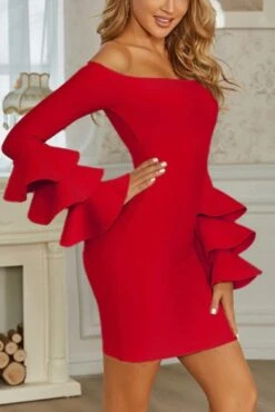 Sexy slight stretch 3 colors off shoulder ruffle slim mini dress