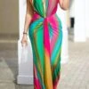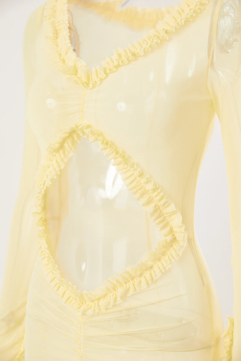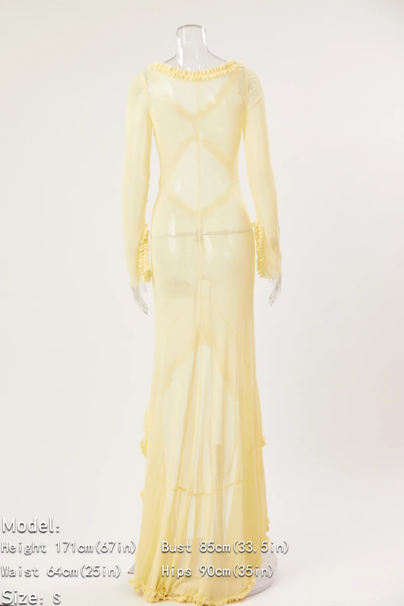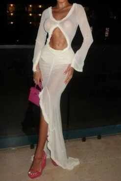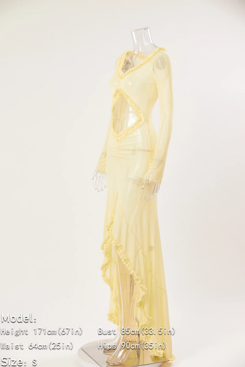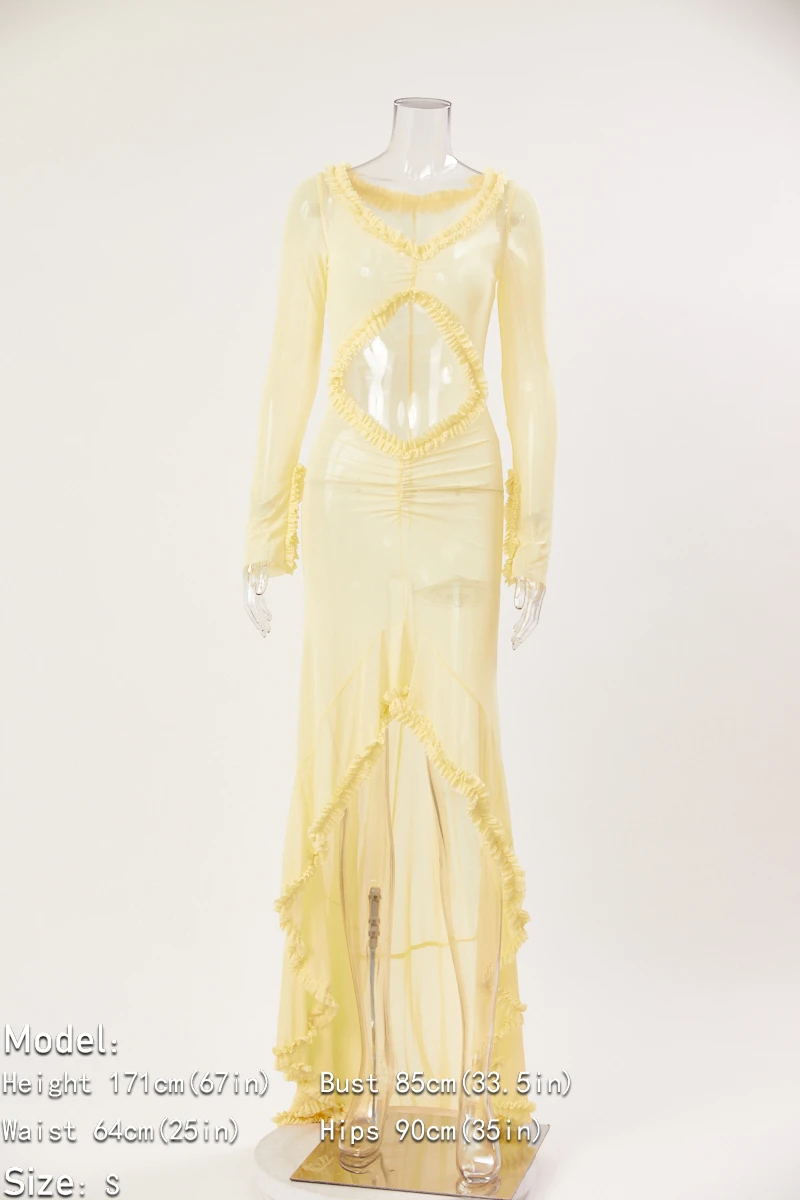 Sexy slight stretch 3 colors see-through mesh hollow slit maxi dress