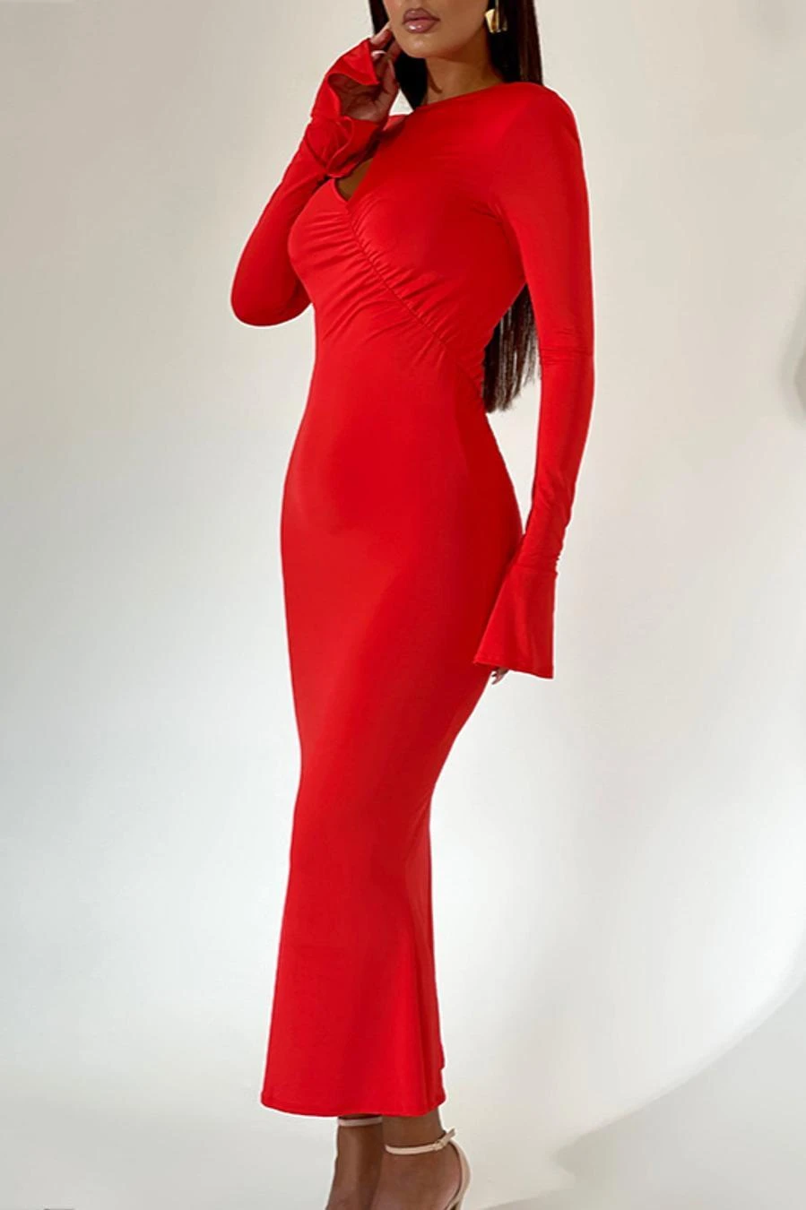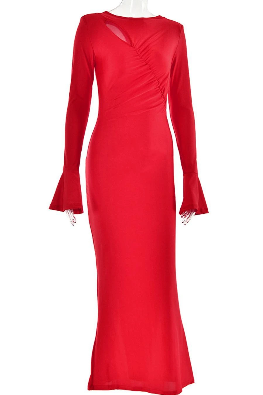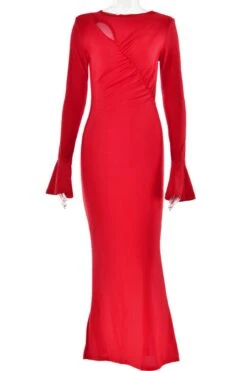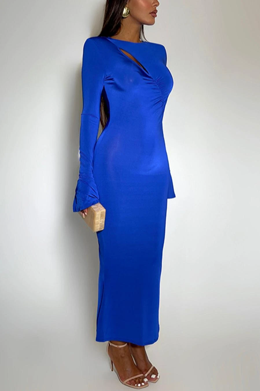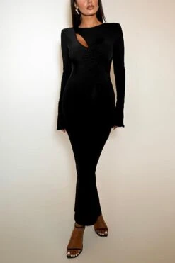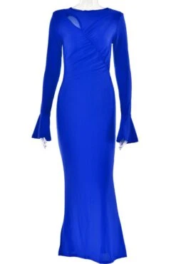 Sexy slight stretch 3 colors solid color crew neck cutout maxi dress