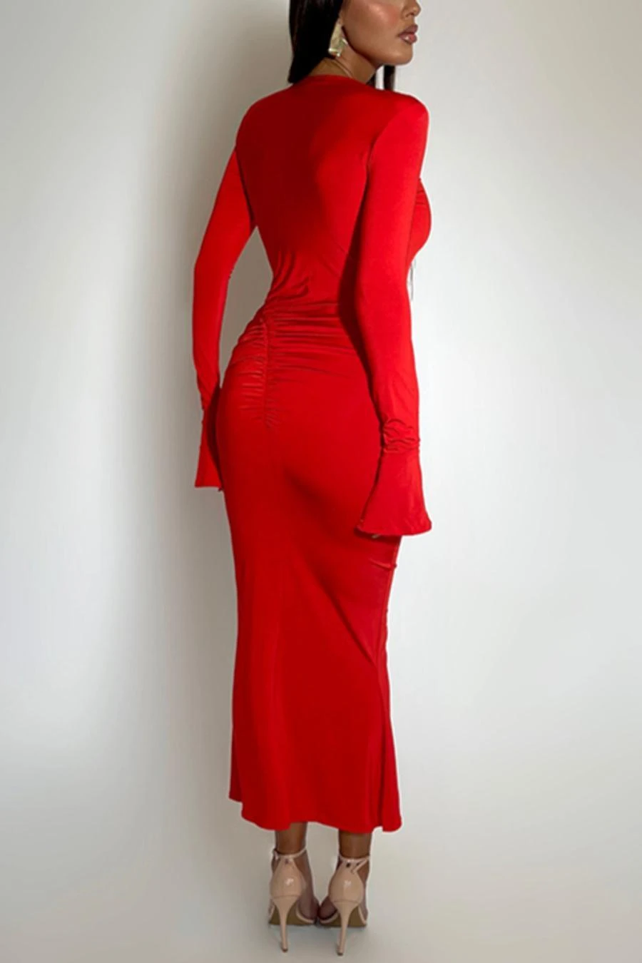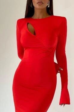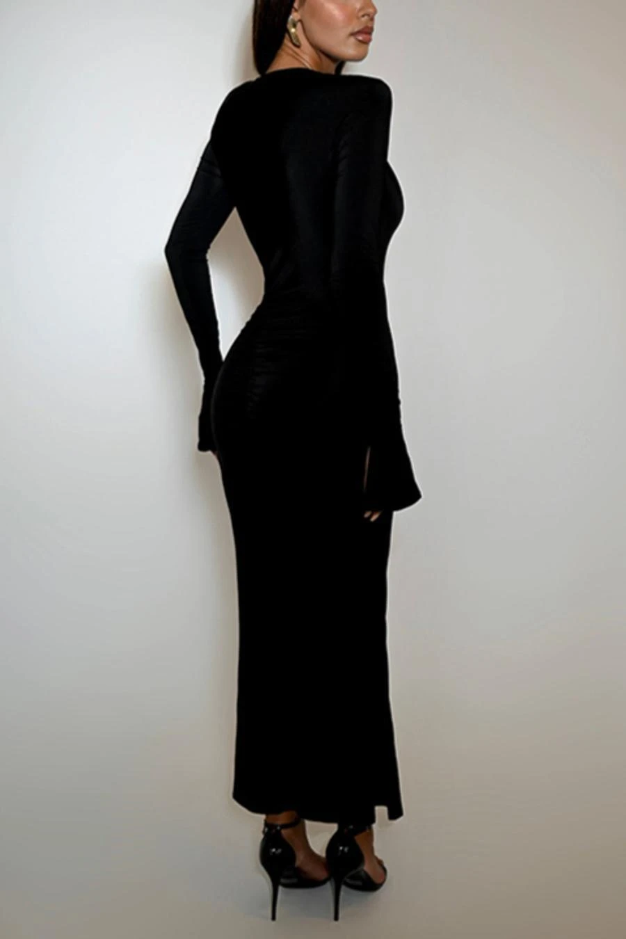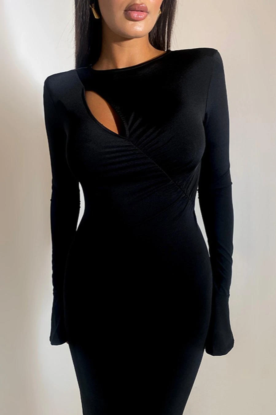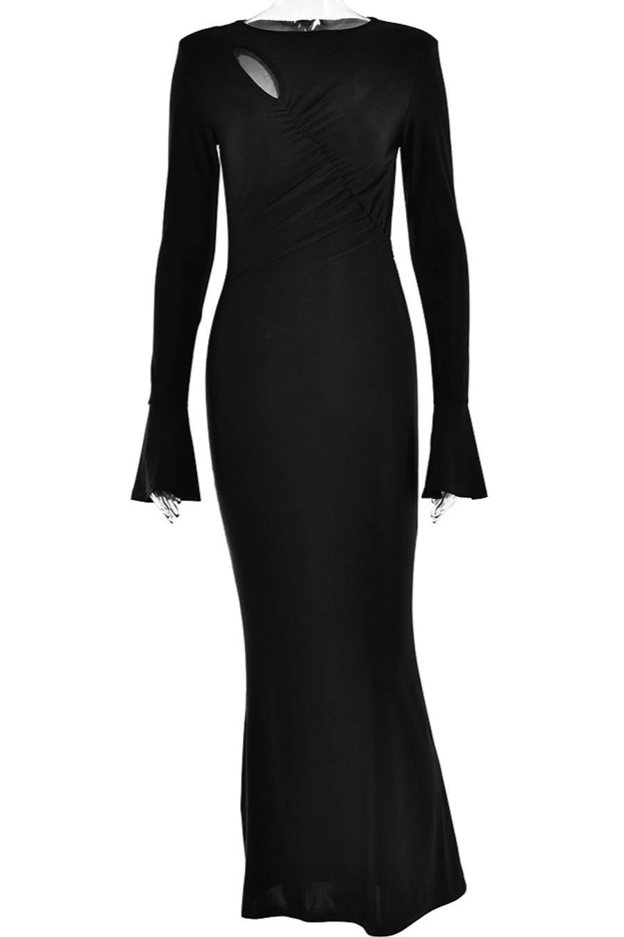 Sexy slight stretch 3 colors solid color crew neck cutout maxi dress
