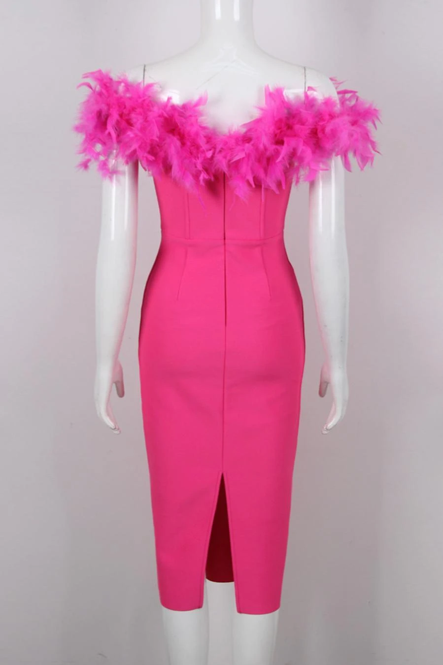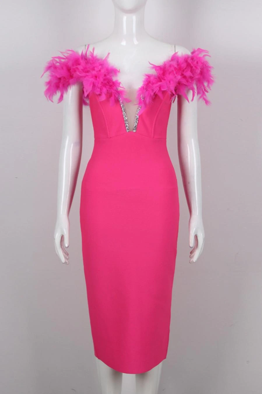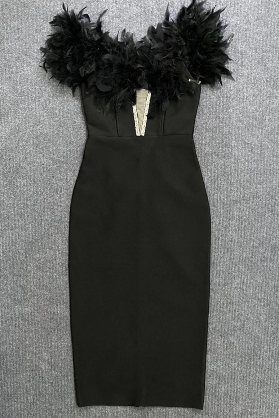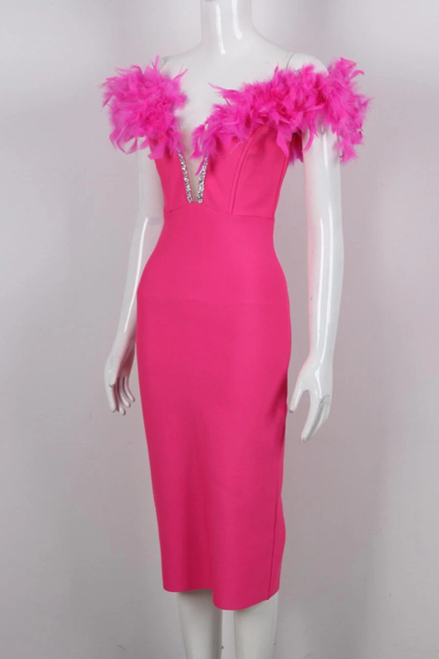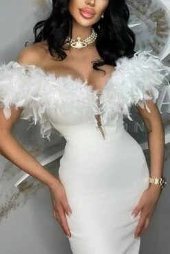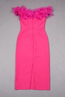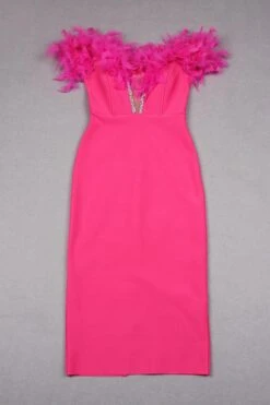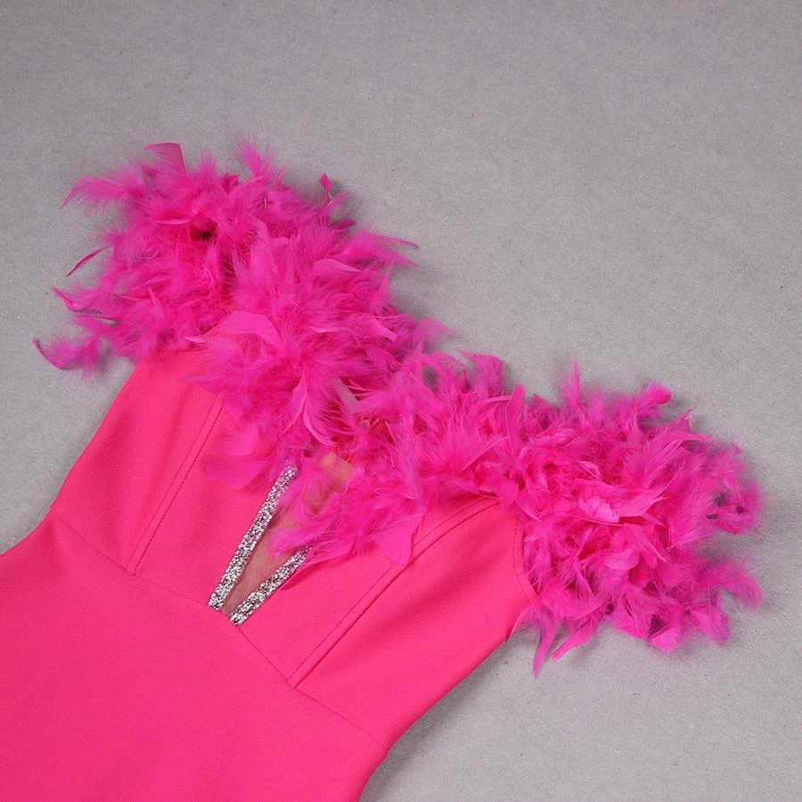 Sexy slight stretch 4 colors feather decor tube design midi dress