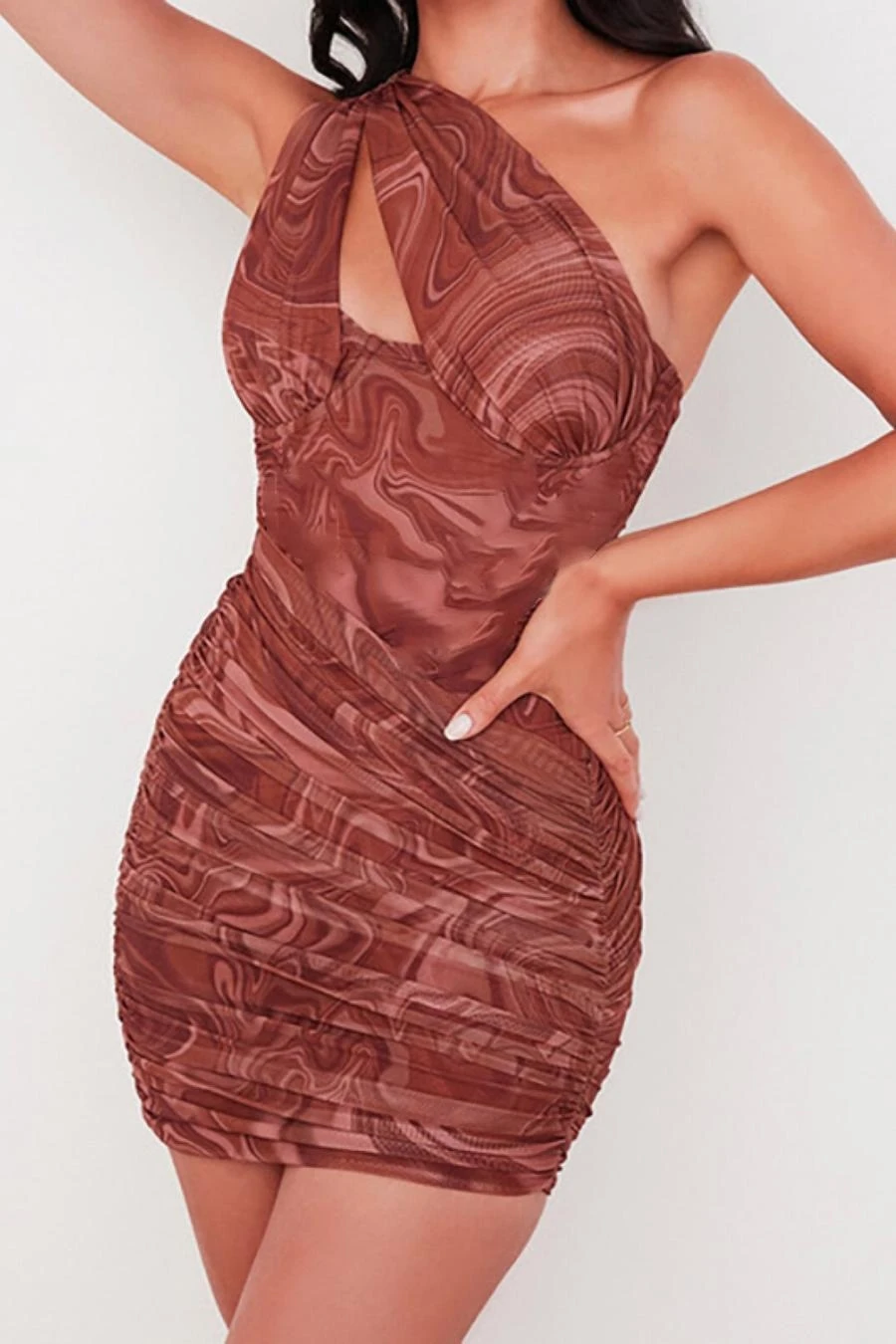 Sexy slight stretch 4 colors one shoulder hollow slim mini dress