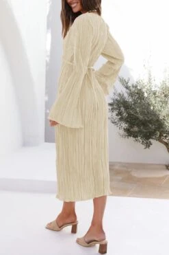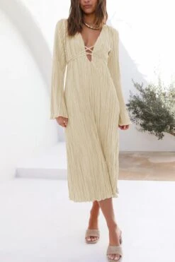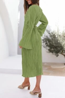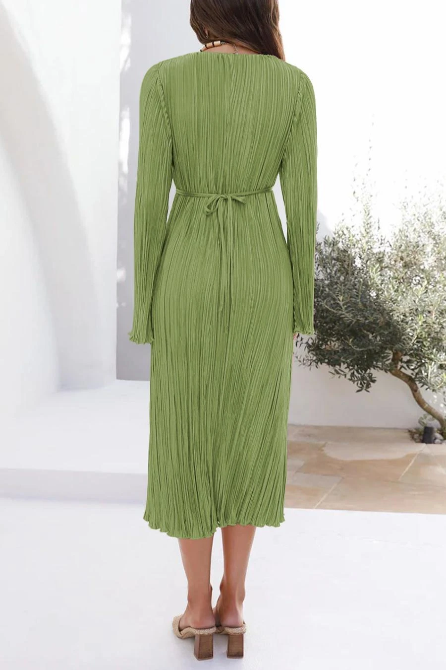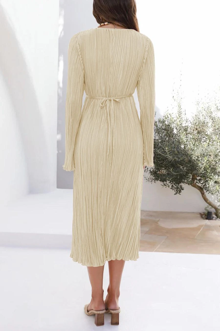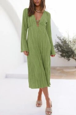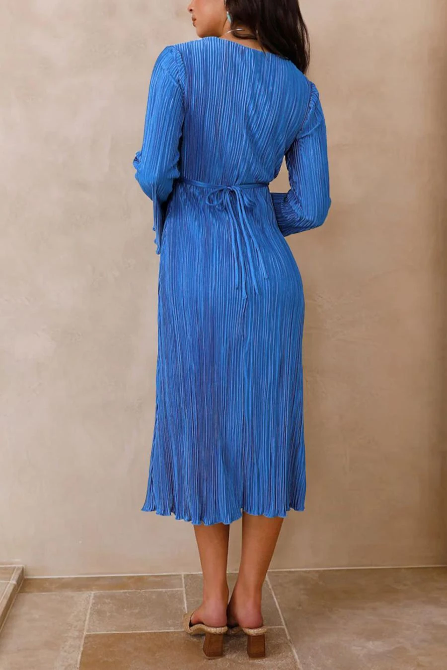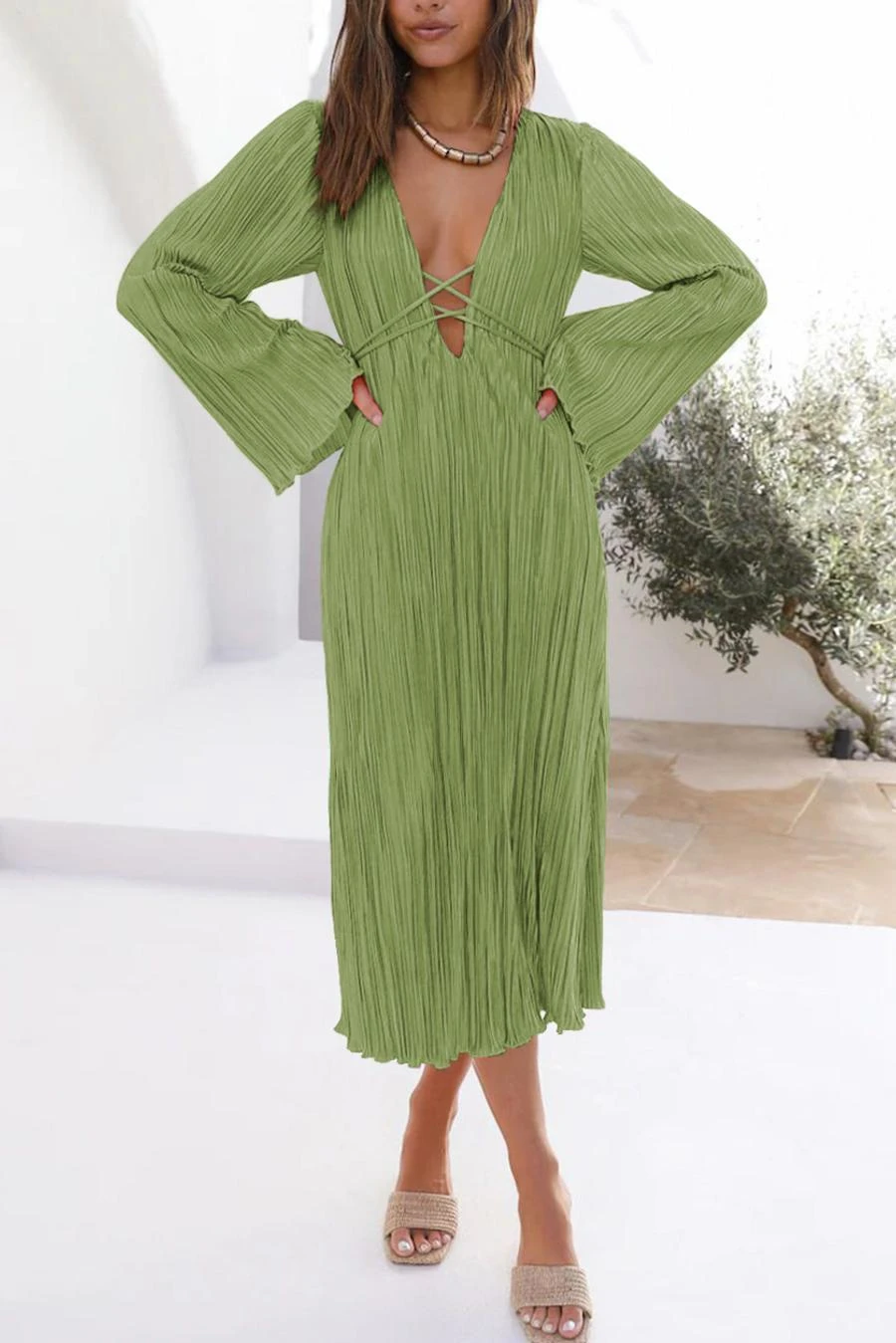 Sexy slight stretch 6 colors solid color deep v pleated midi dress