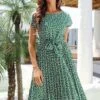 Sexy slight stretch batch printing open back slit suspender mini floral dress