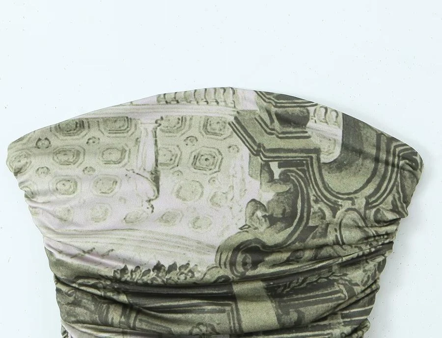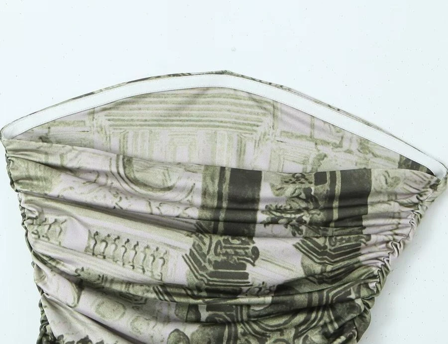 Sexy slight stretch batch printing strapless slim mini dress size run small