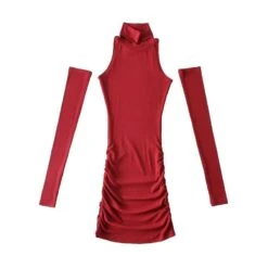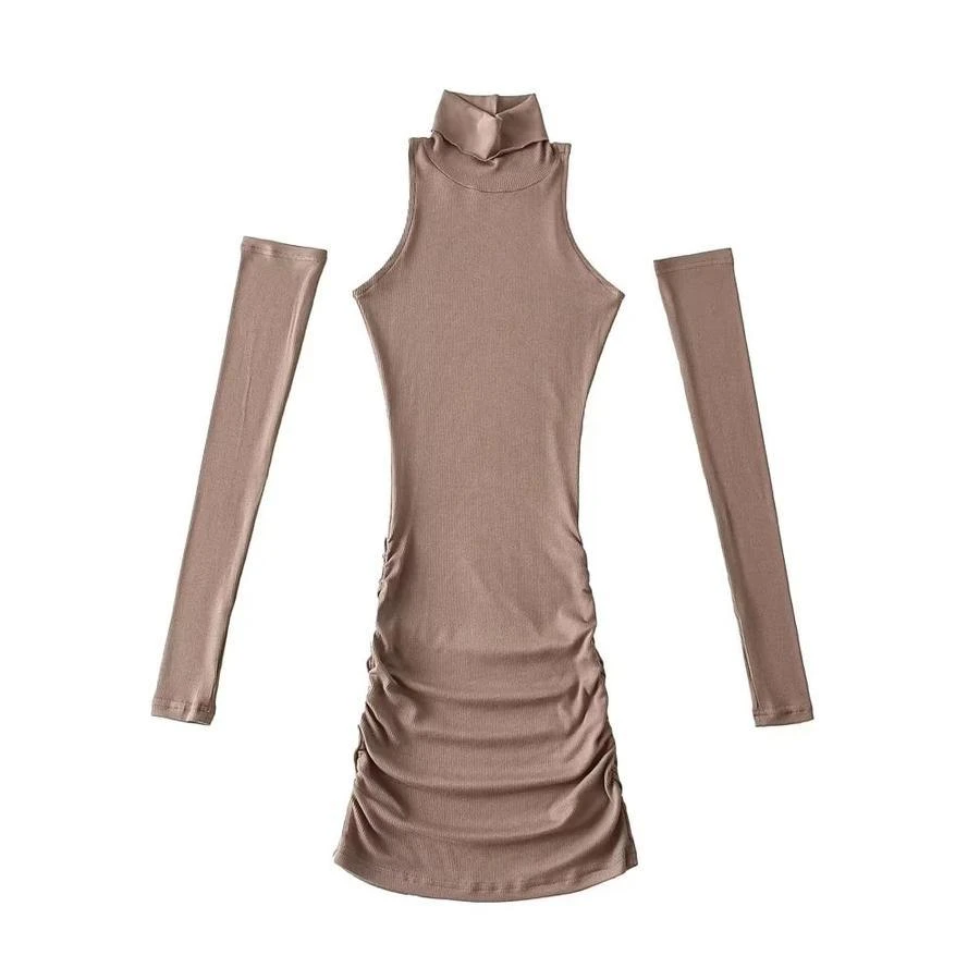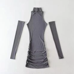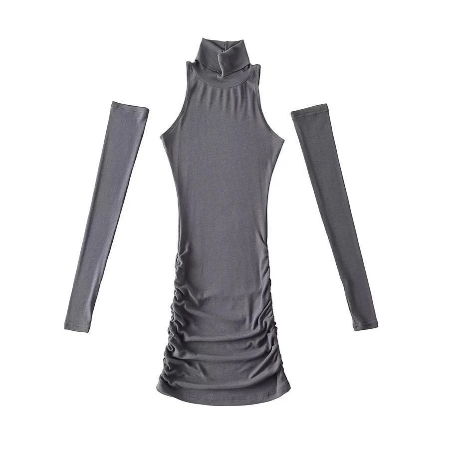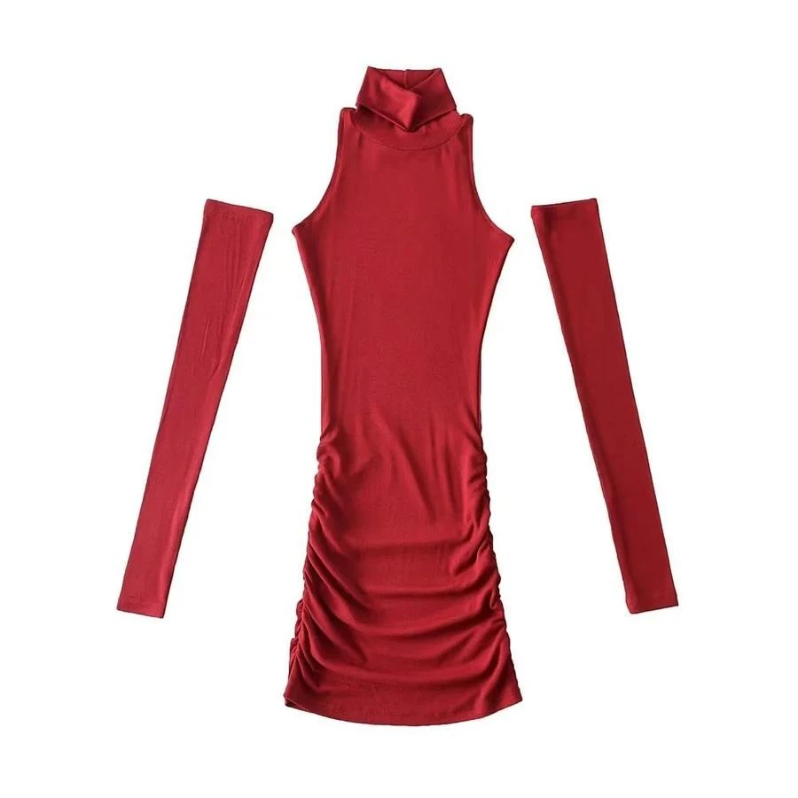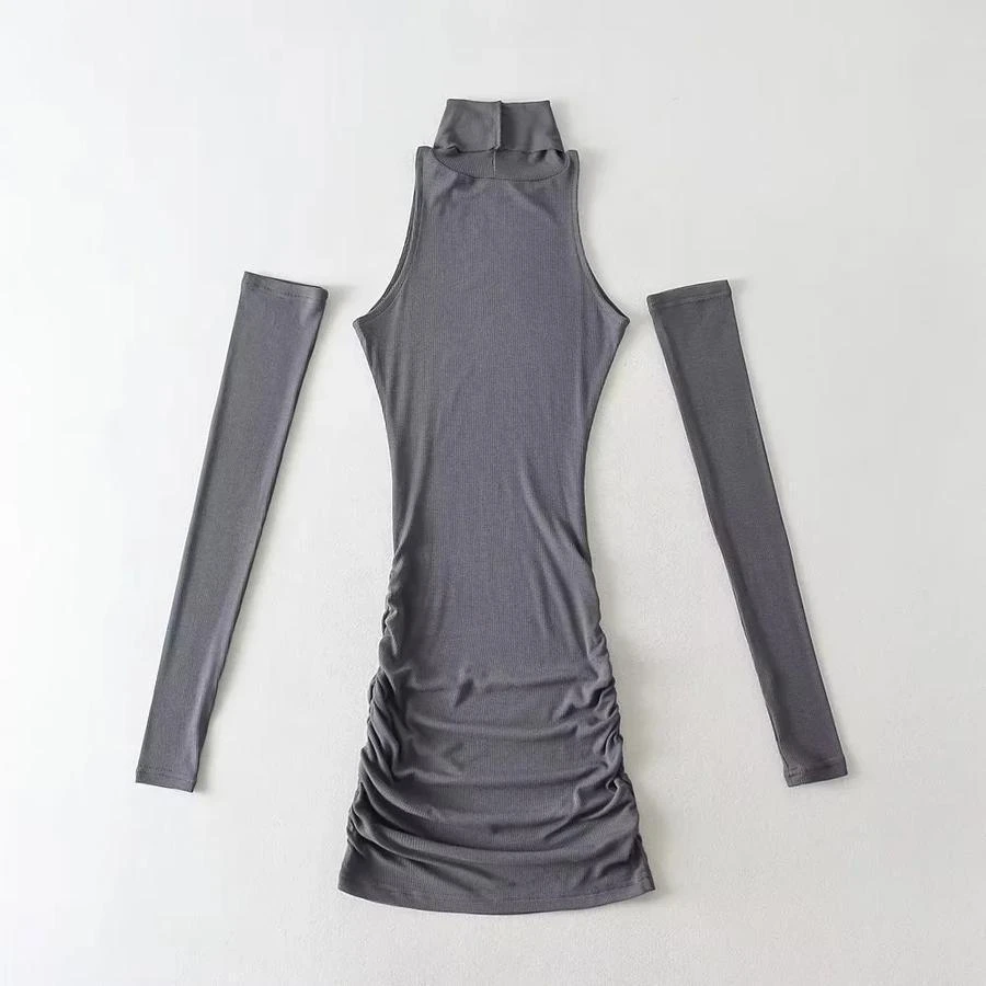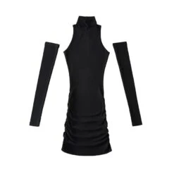 Sexy slight stretch bodycon mini dress with one pair of sleeves(size run small)