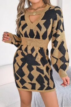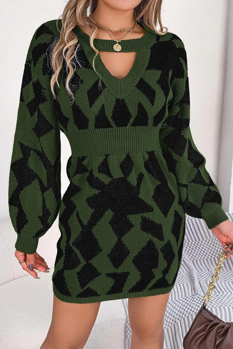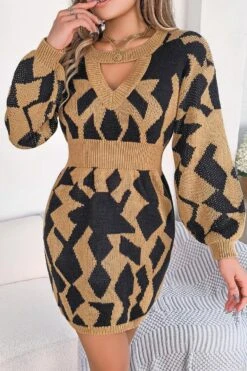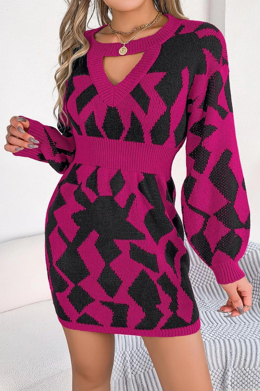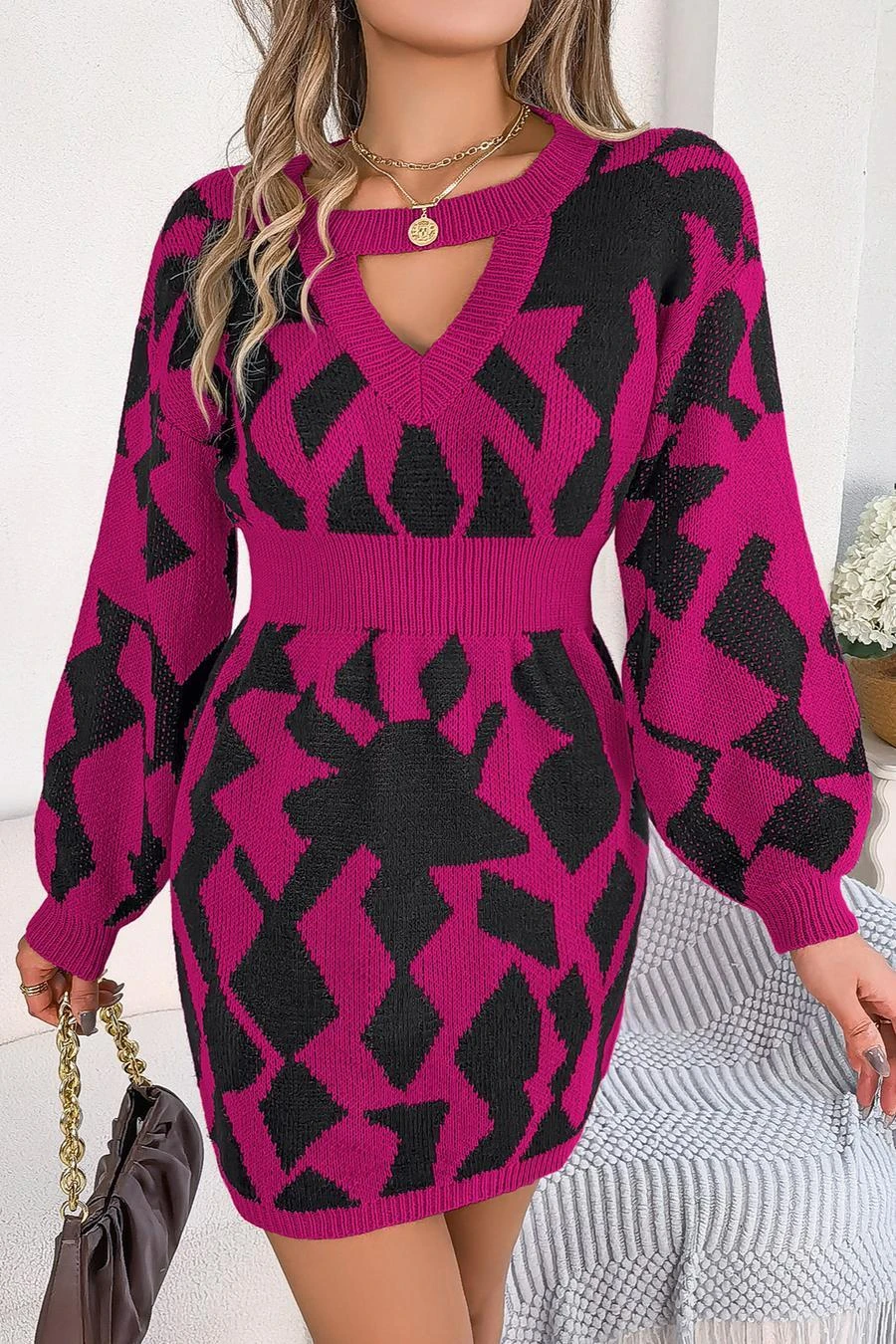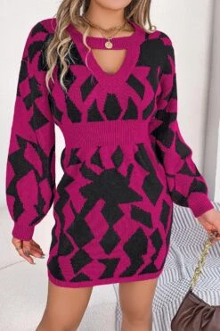 Sexy slight stretch colorblock knitted hollow sweater bodycon mini dress