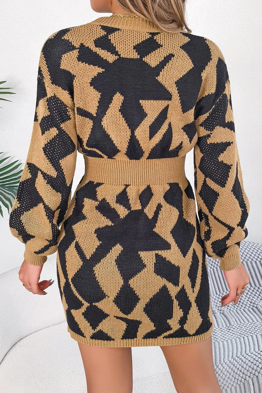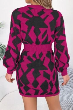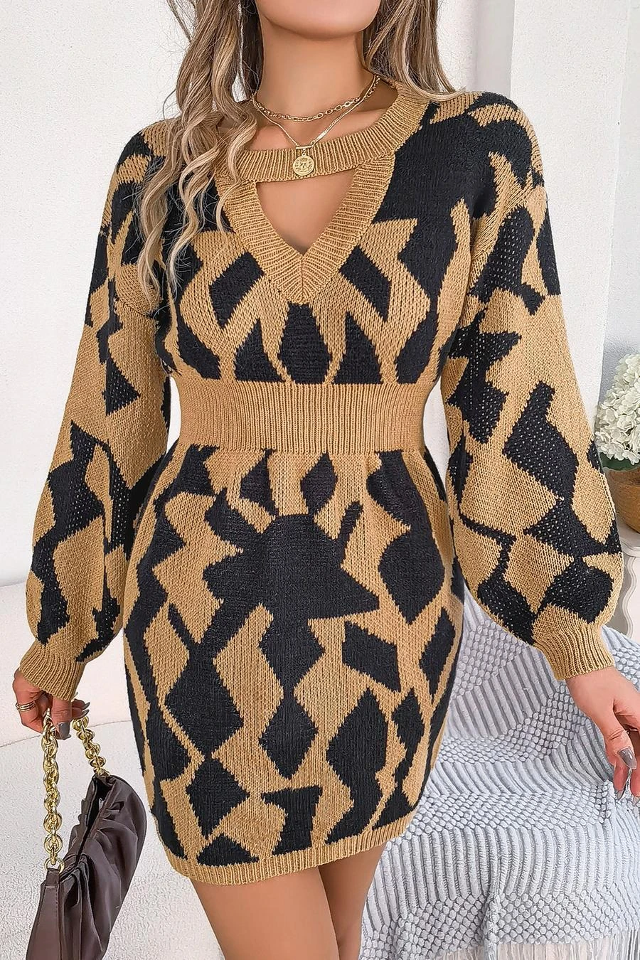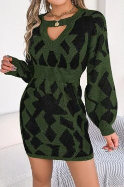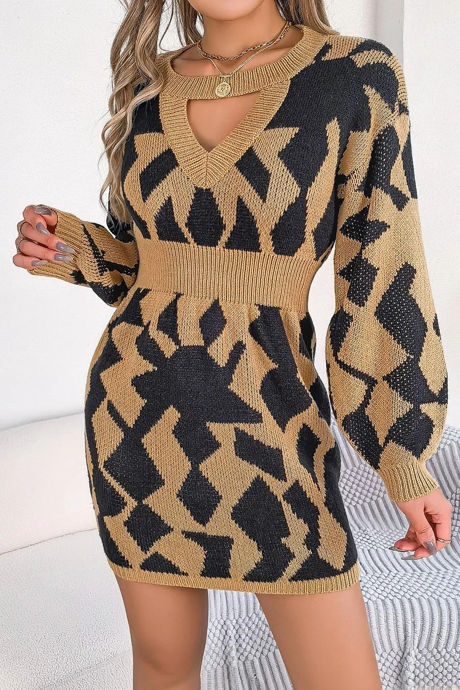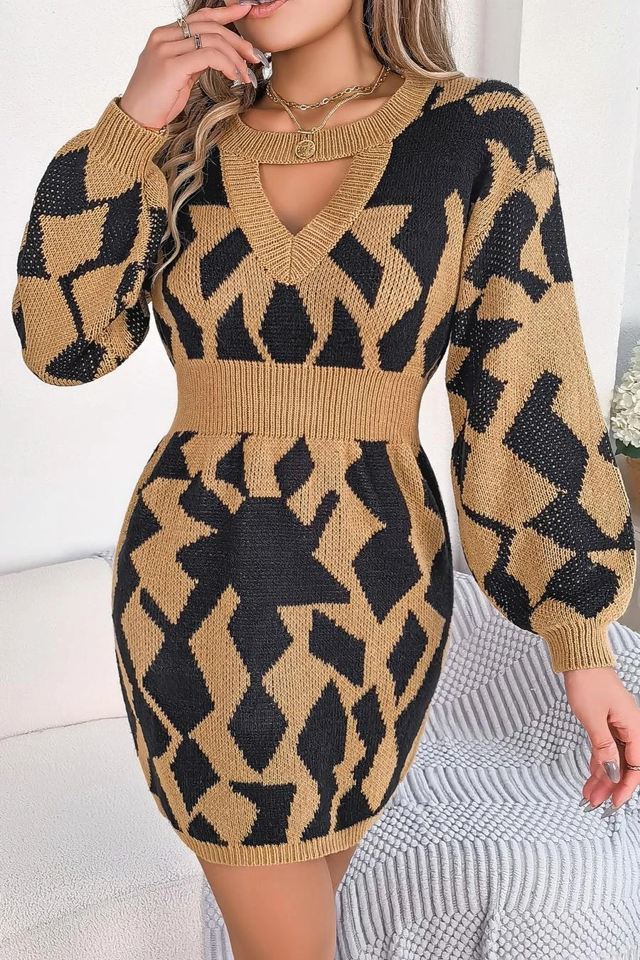 Sexy slight stretch colorblock knitted hollow sweater bodycon mini dress