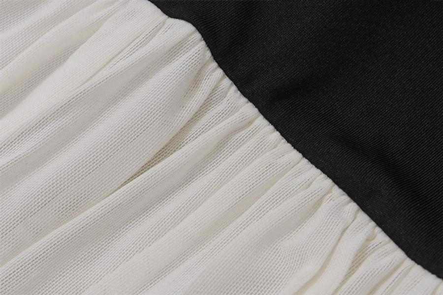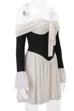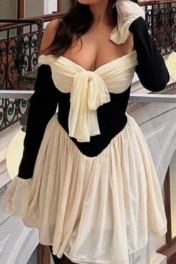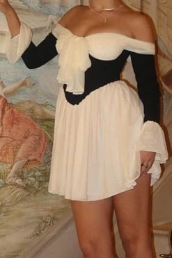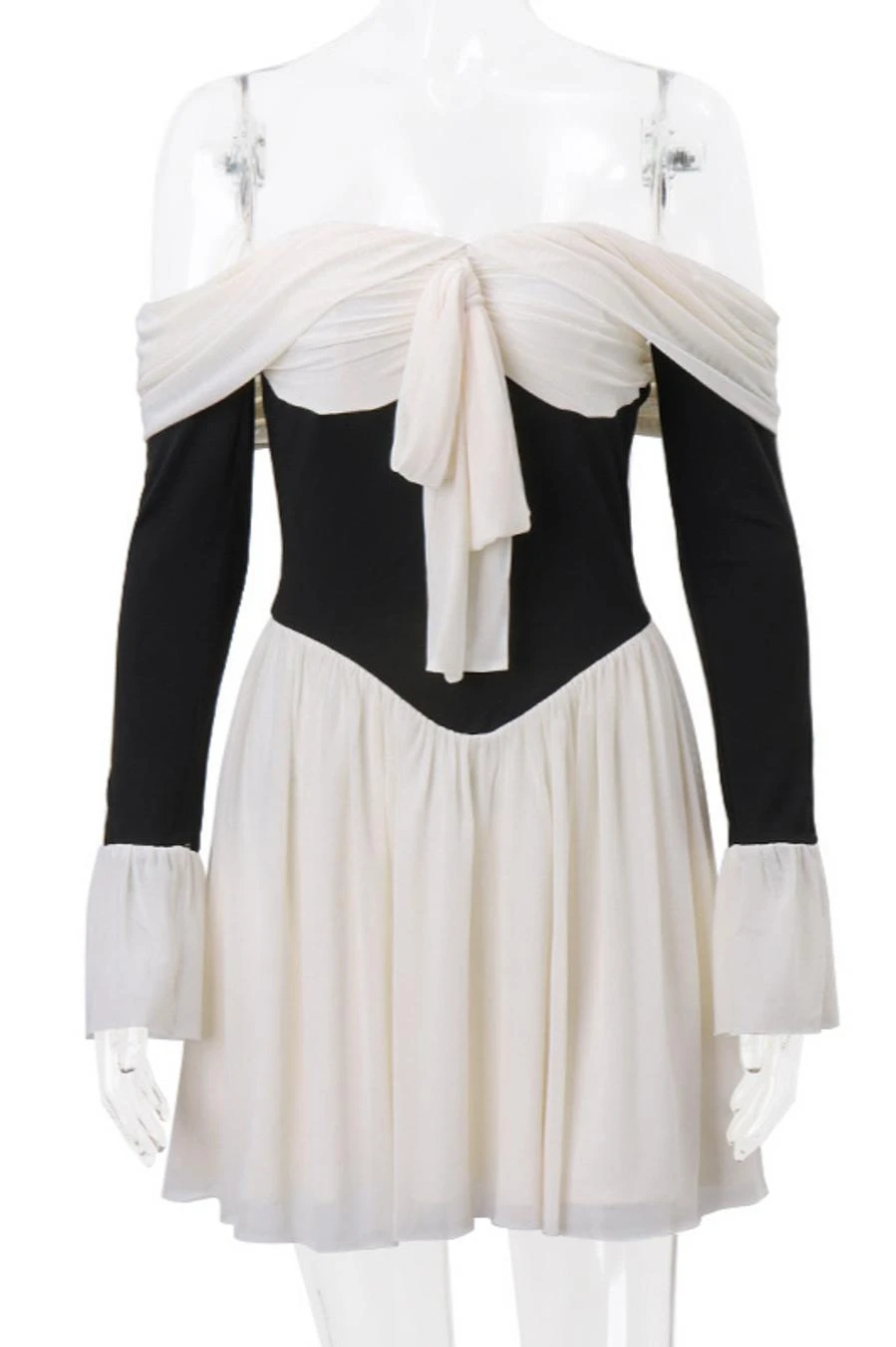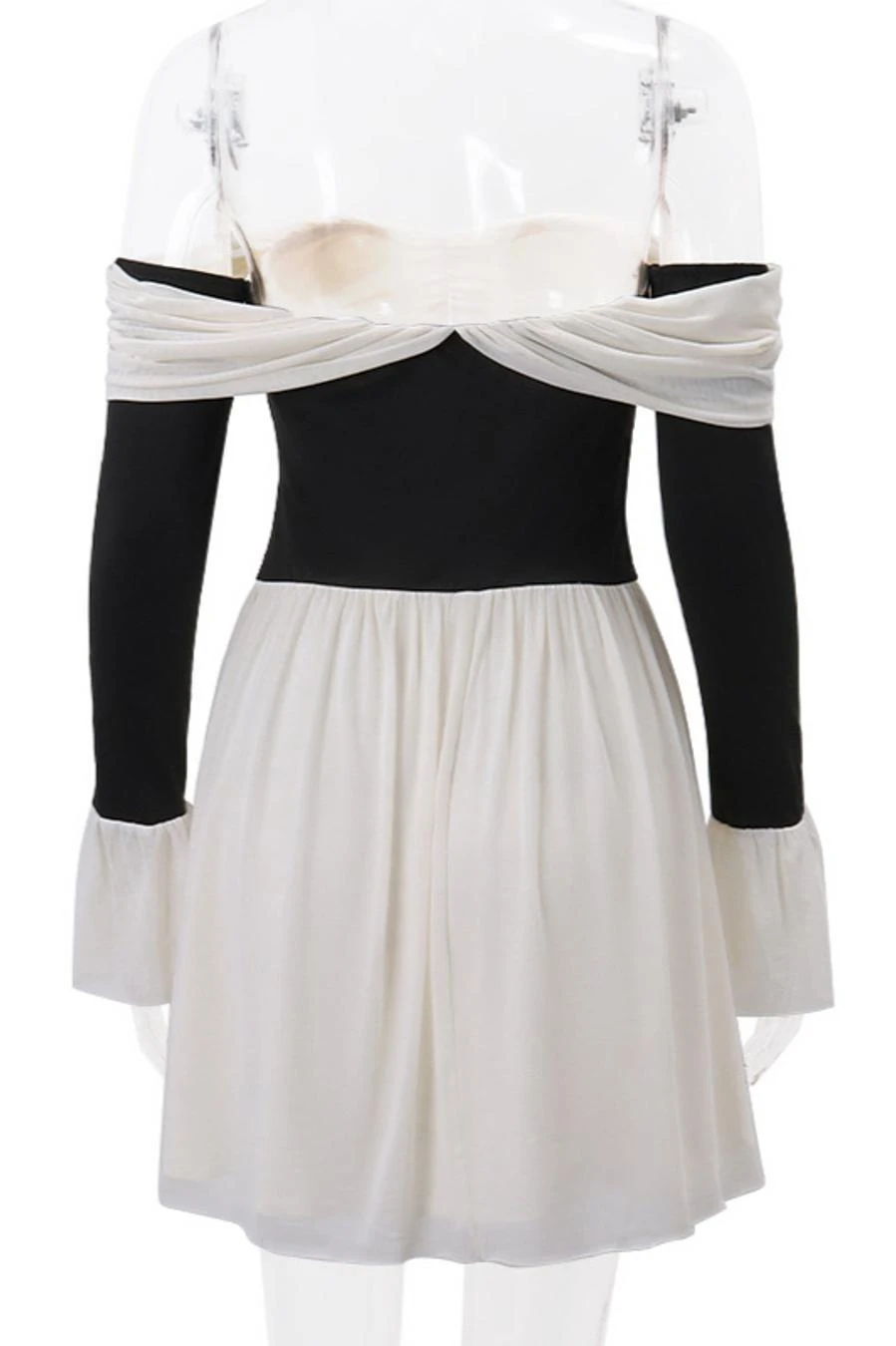Sexy slight stretch contrast color off shoulder long sleeve mini dress