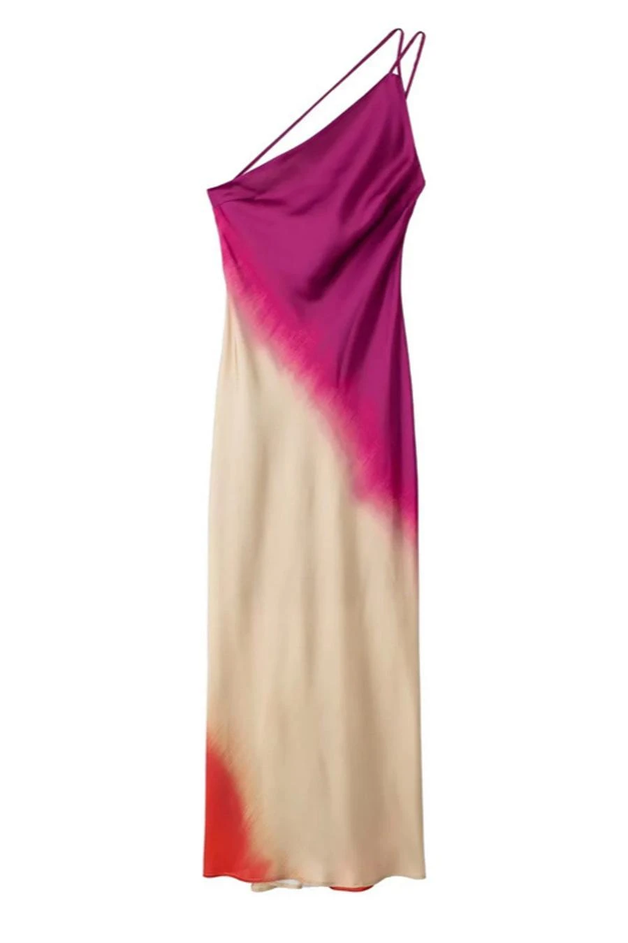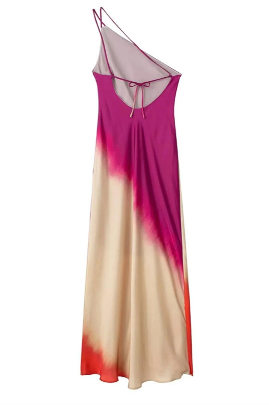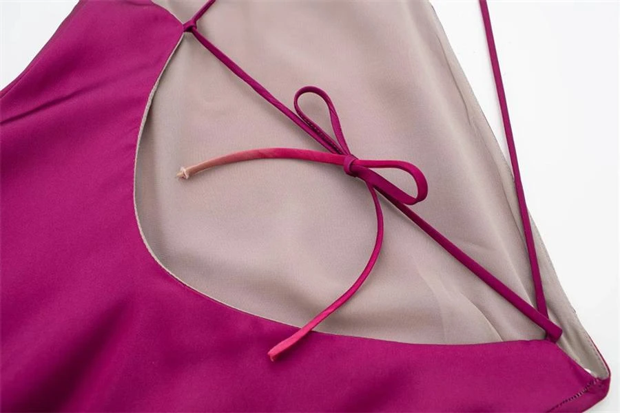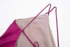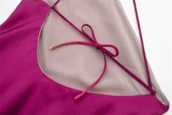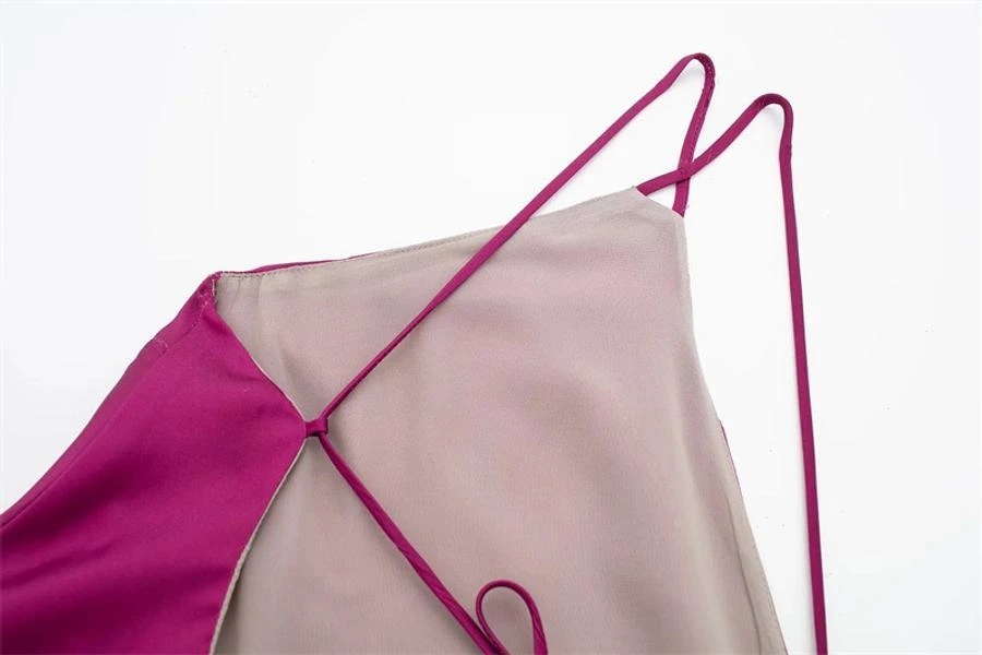 Sexy slight stretch contrast color one shoulder backless lace-up maxi dress