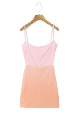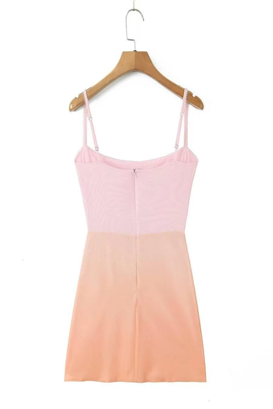 Sexy slight stretch contrast color sling slim zip-up mini dress size run small