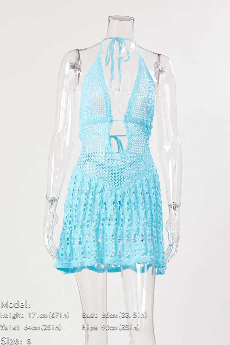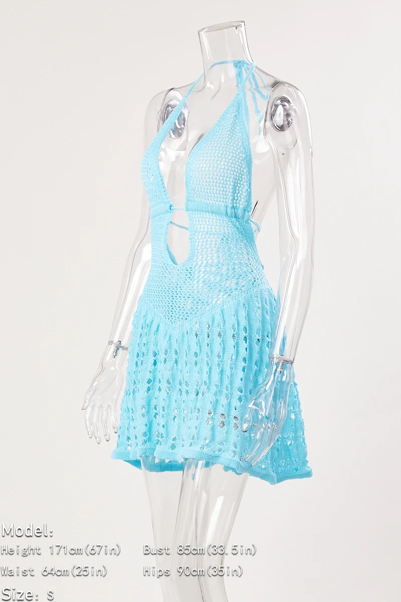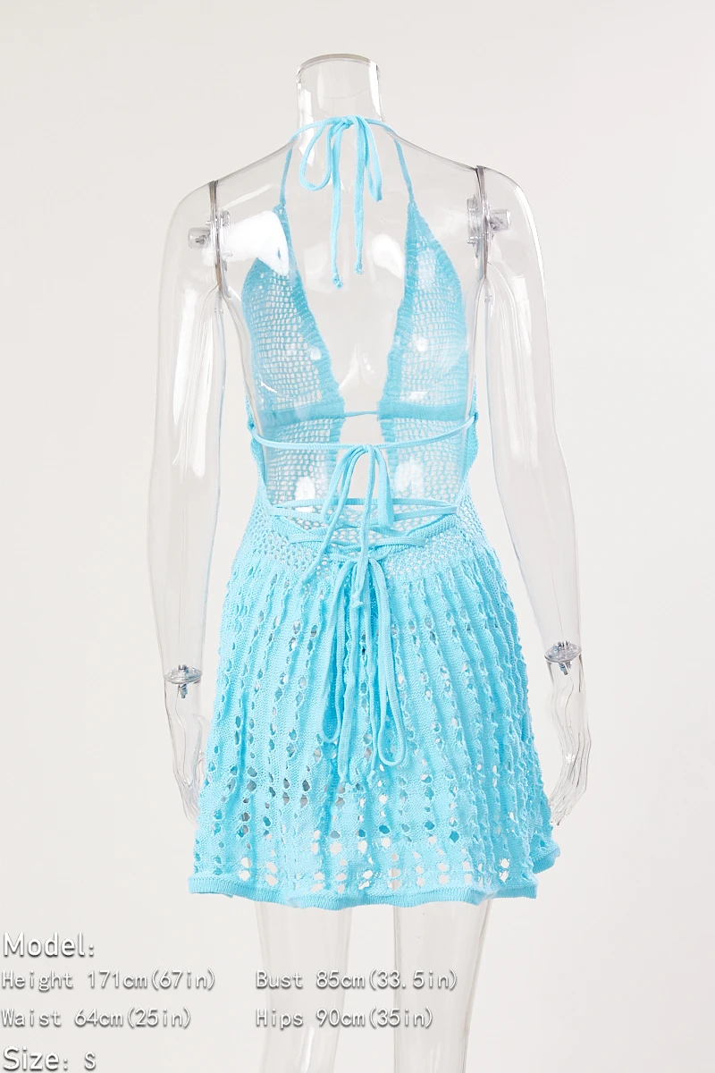 Sexy slight stretch cutout knitted lace-up mini dress(without underwear)