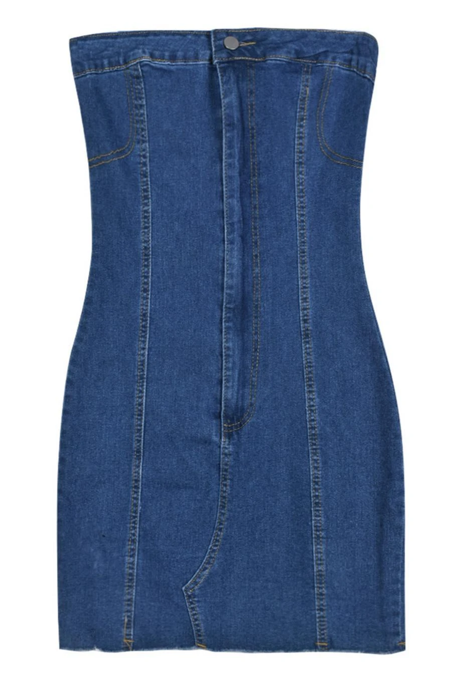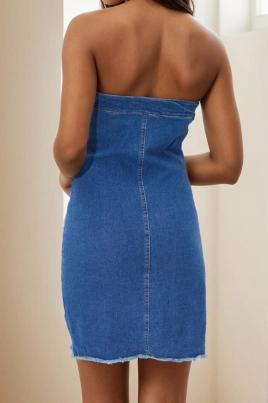 Sexy slight stretch denim tube design raw edge bodycon mini dress