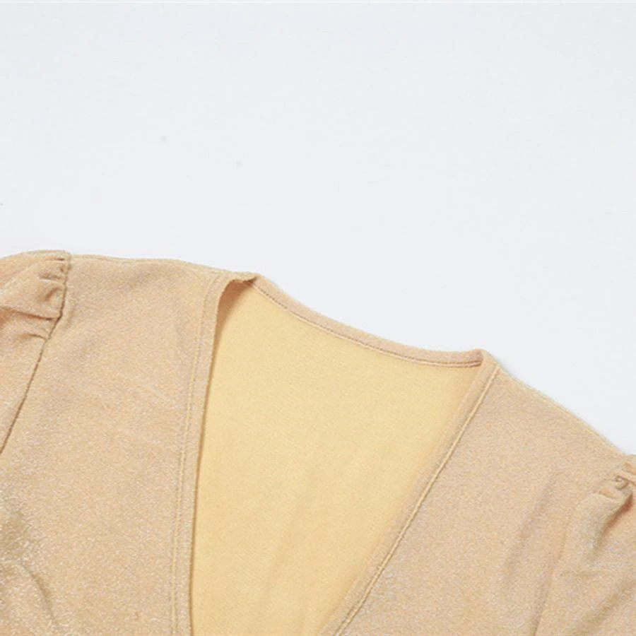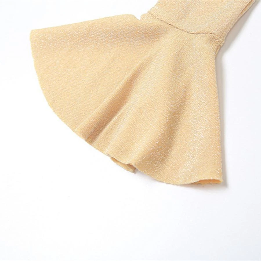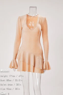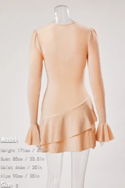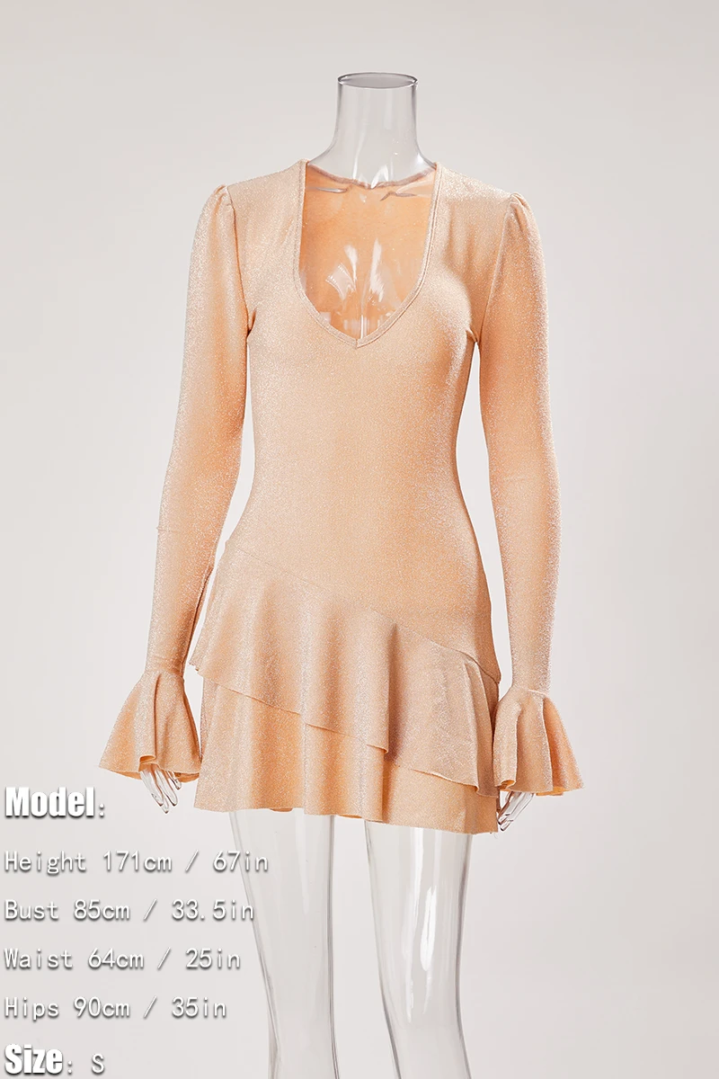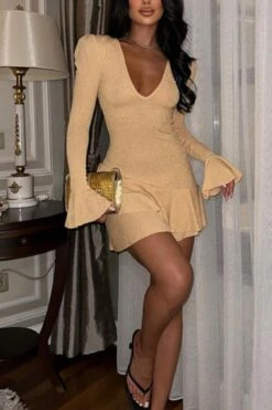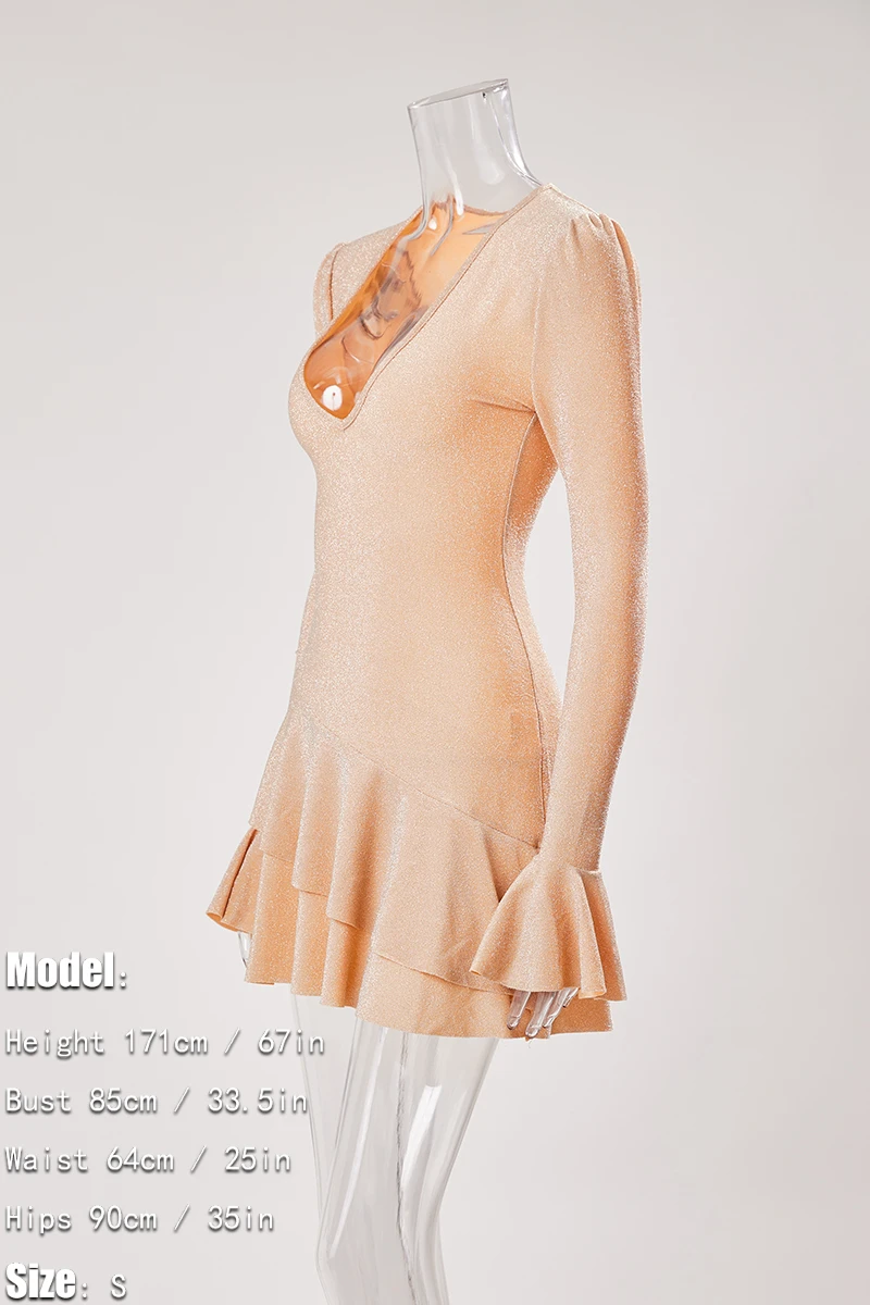 Sexy slight stretch flare sleeve stylish slim low-cut mini dress