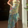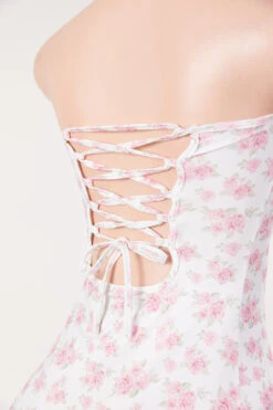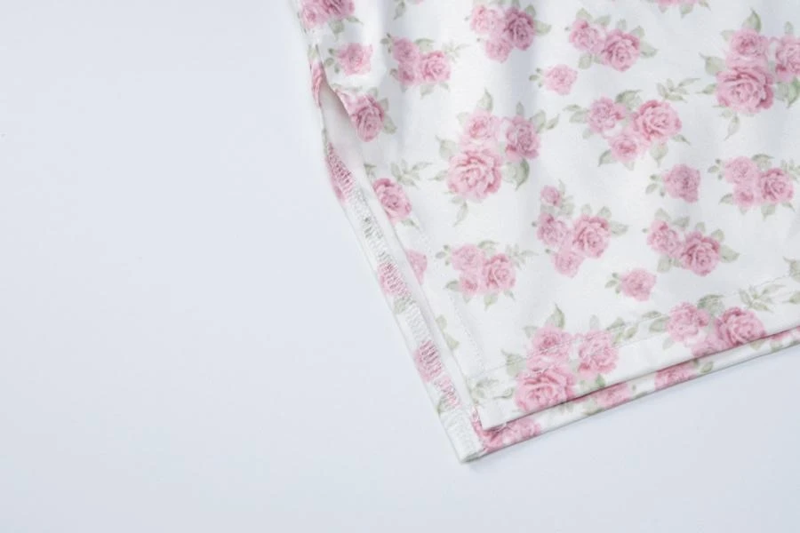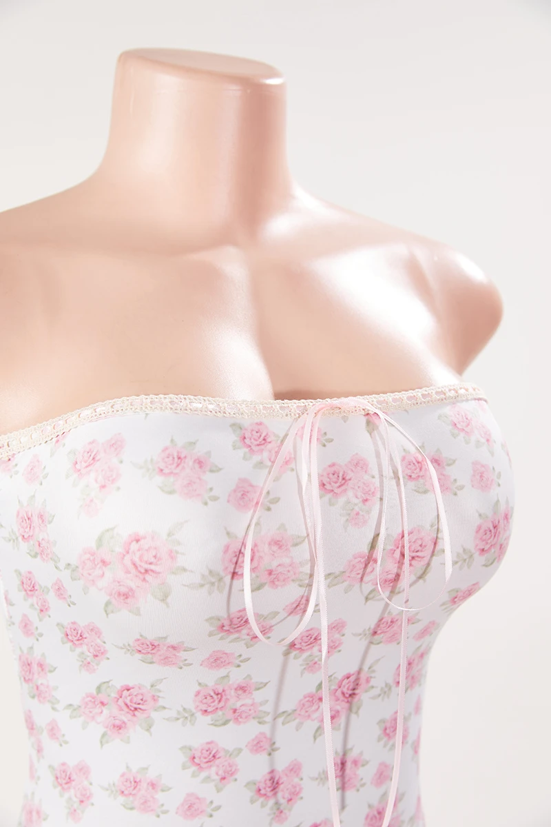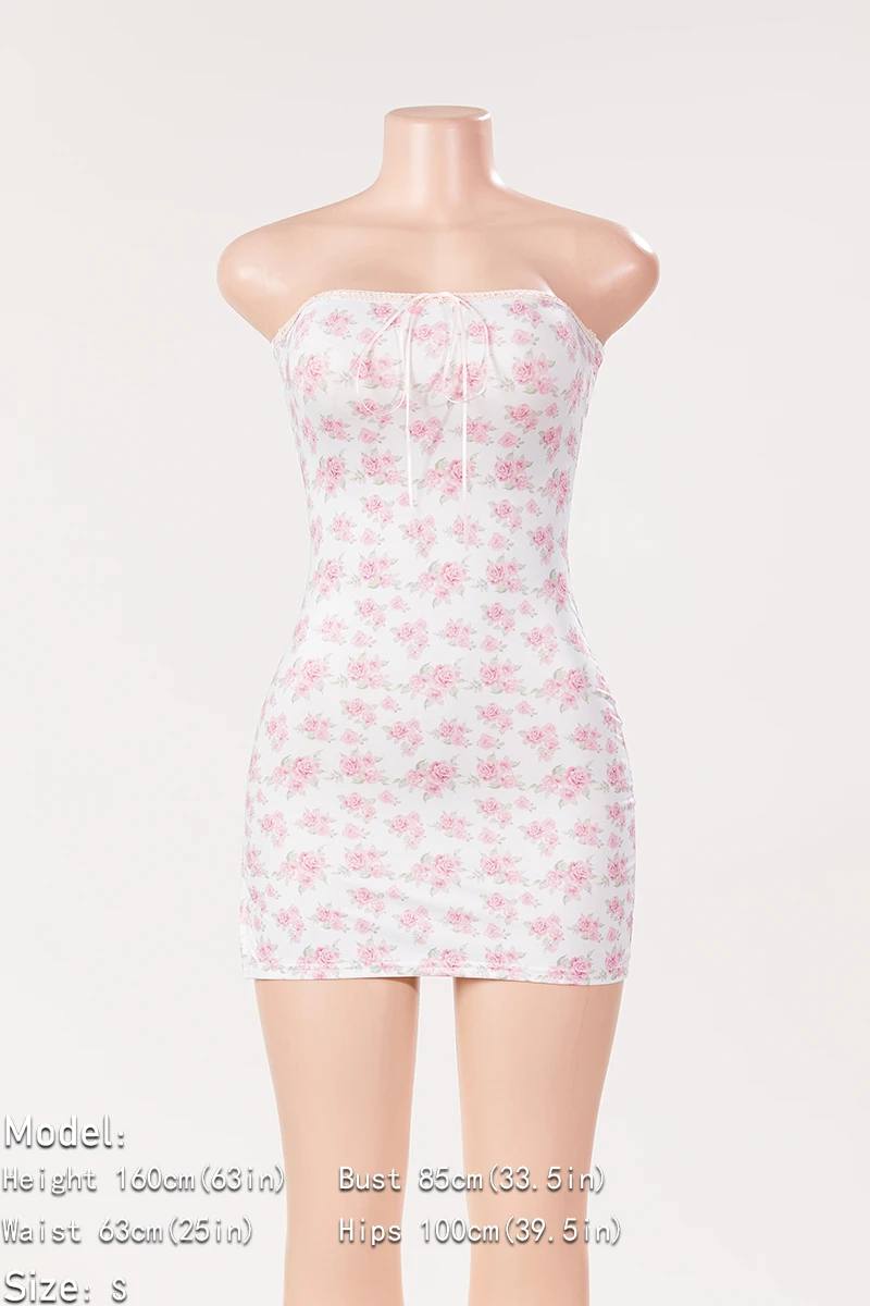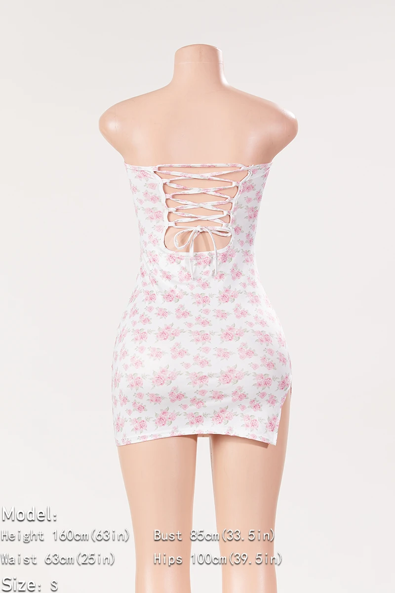 Sexy slight stretch floral batch printing tube design lace-up slit mini dress