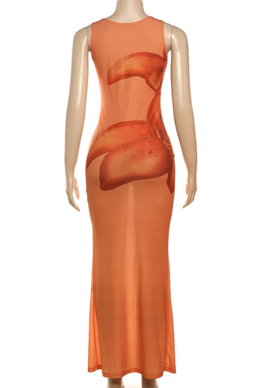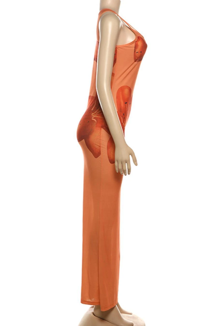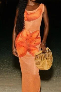 Sexy slight stretch flower fixed printing sleeveless maxi dress