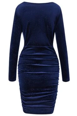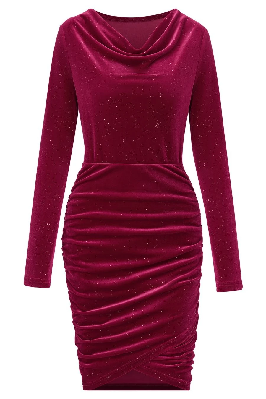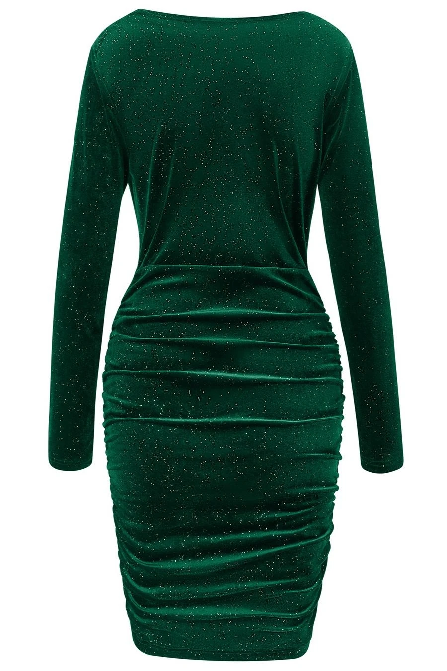 Sexy slight stretch glitter velvet long sleeve slim mini dress