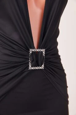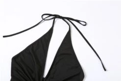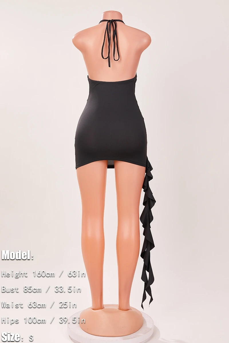 Sexy slight stretch halter-neck deep v-neck mini dress