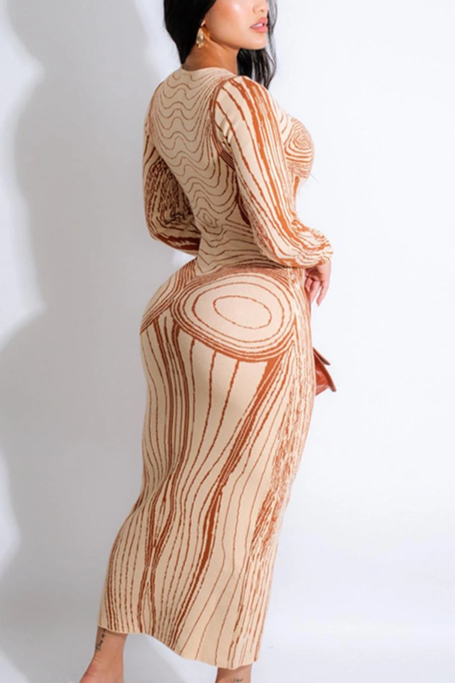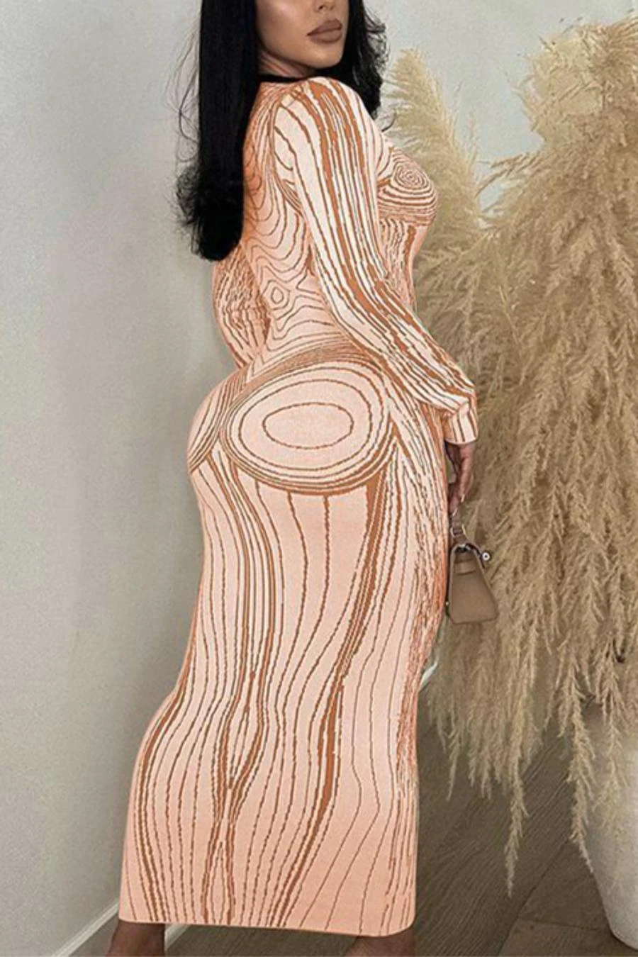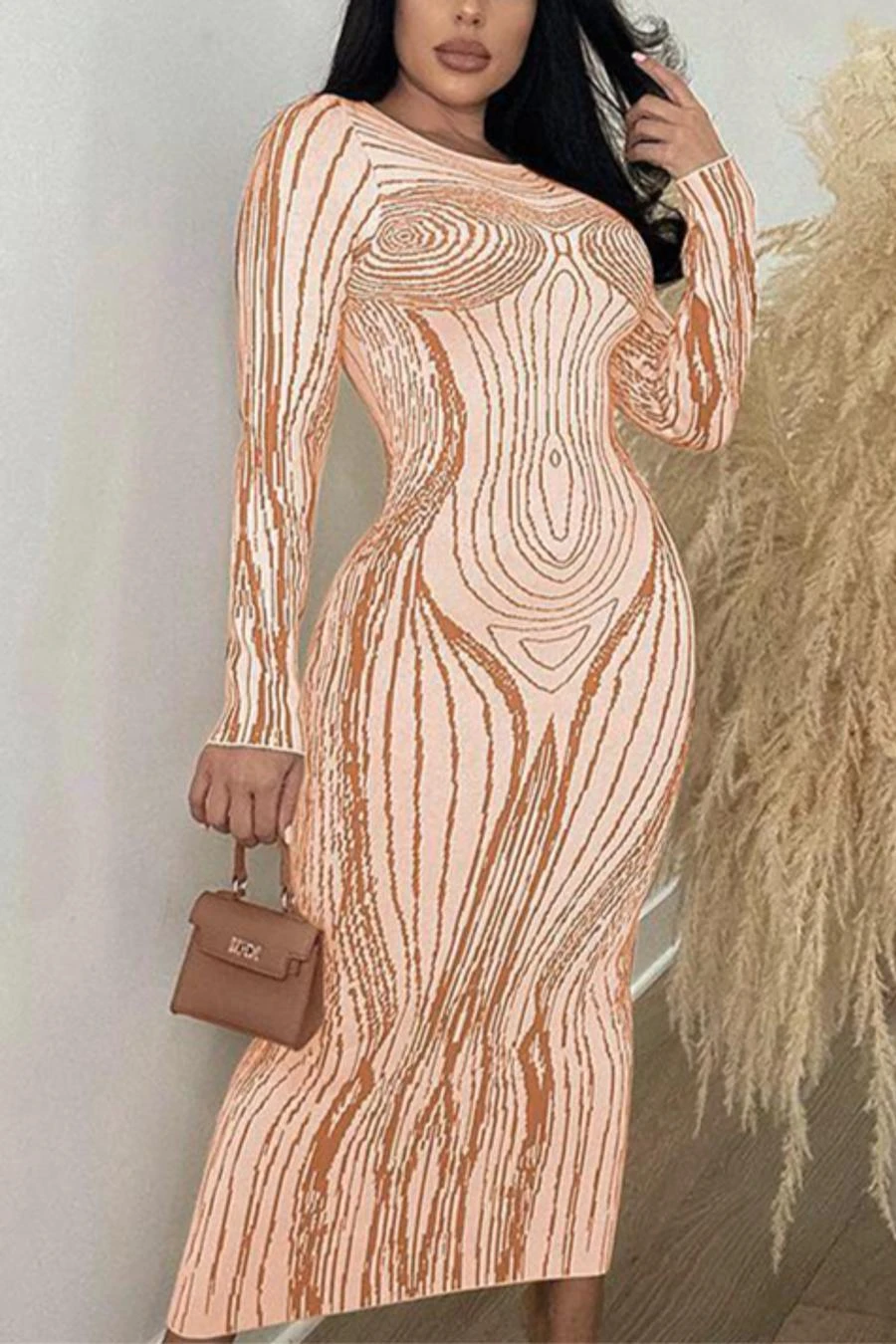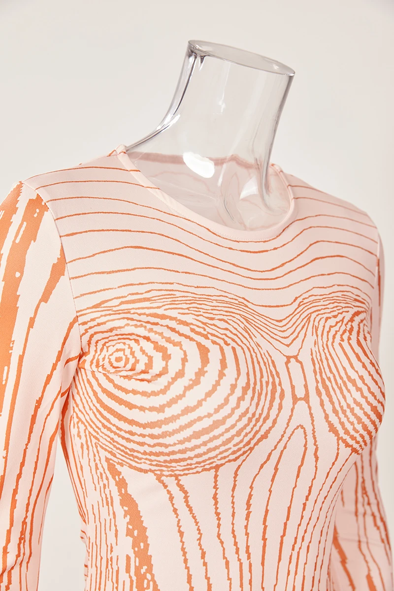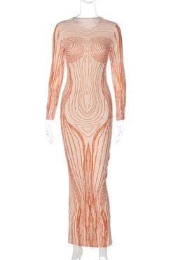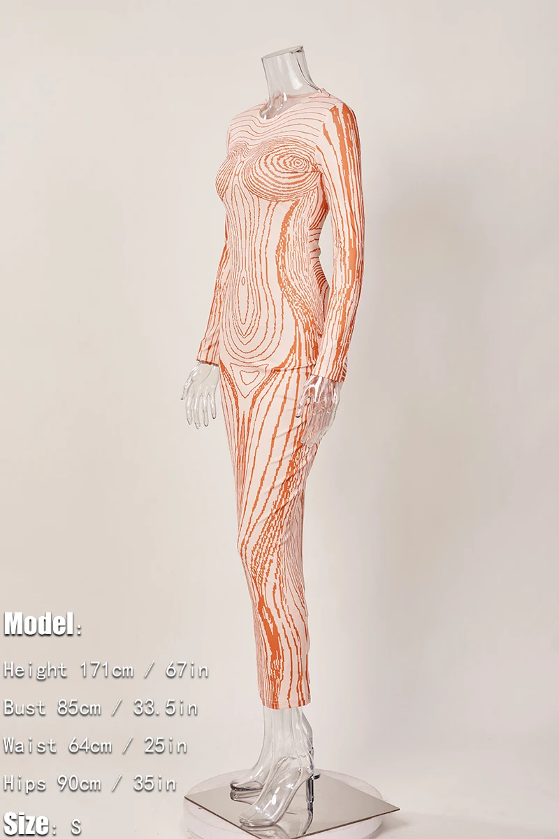 Sexy slight stretch human body printing crew neck slim maxi dress
