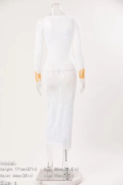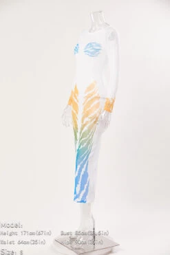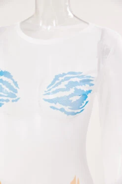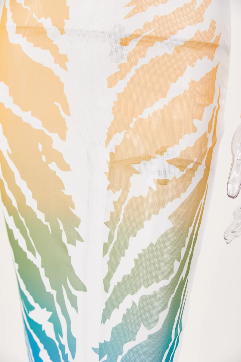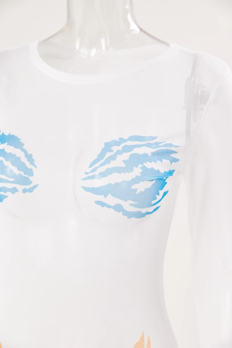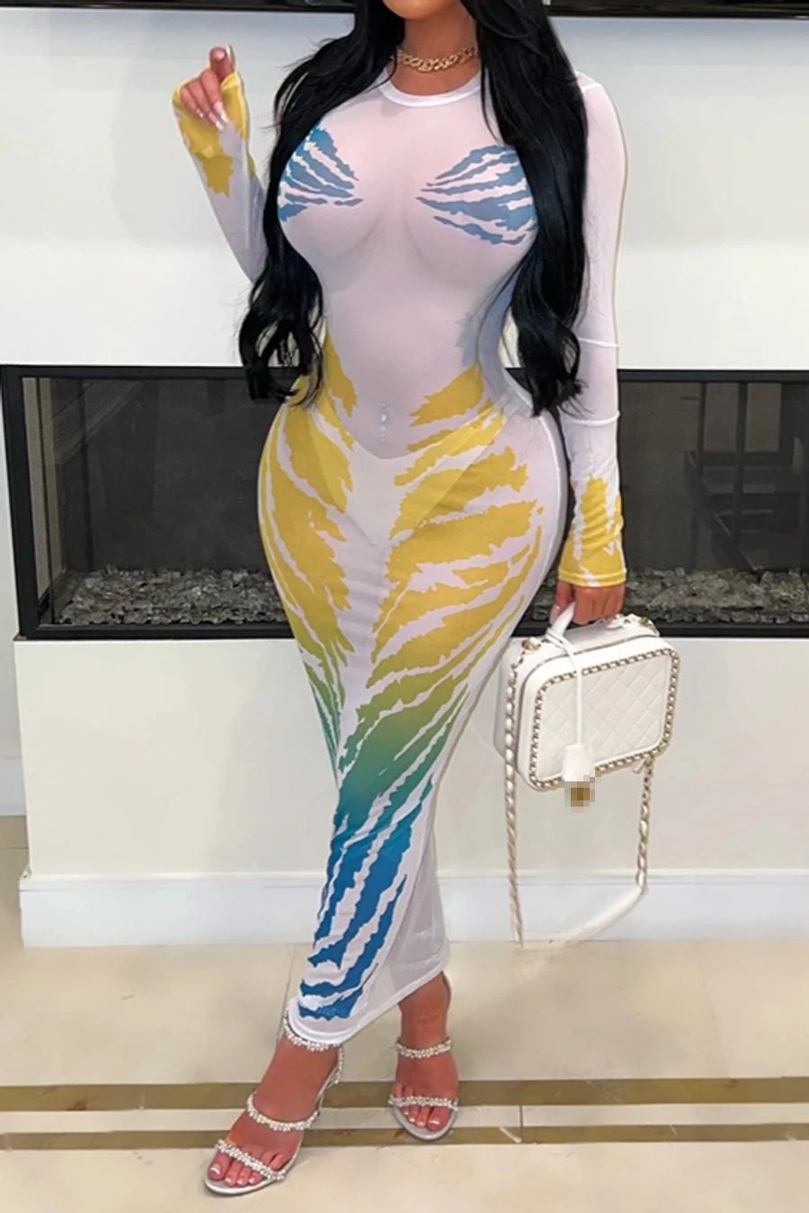 Sexy slight stretch human body printing see-through mesh maxi dress