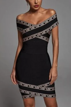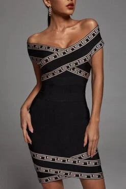 Sexy slight stretch jacquard off-shoulder bodycon zip-up mini dress