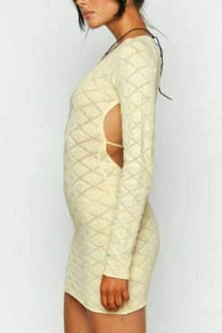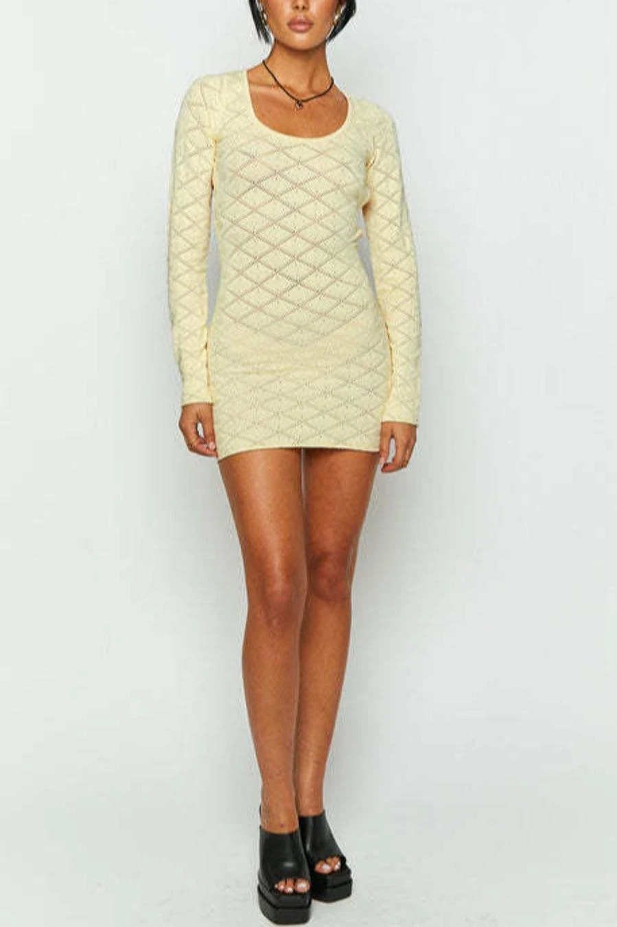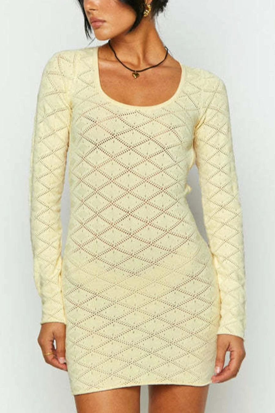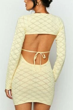 Sexy slight stretch knitted backless lace-up long sleeve bodycon mini dress