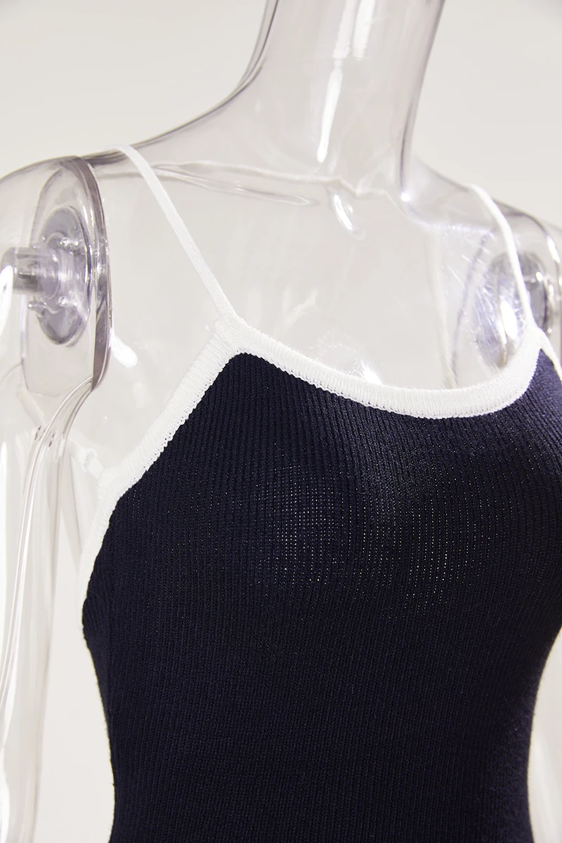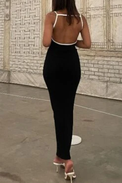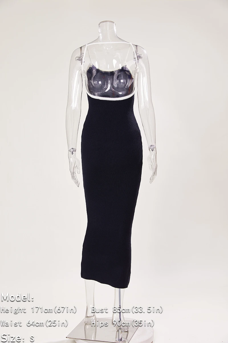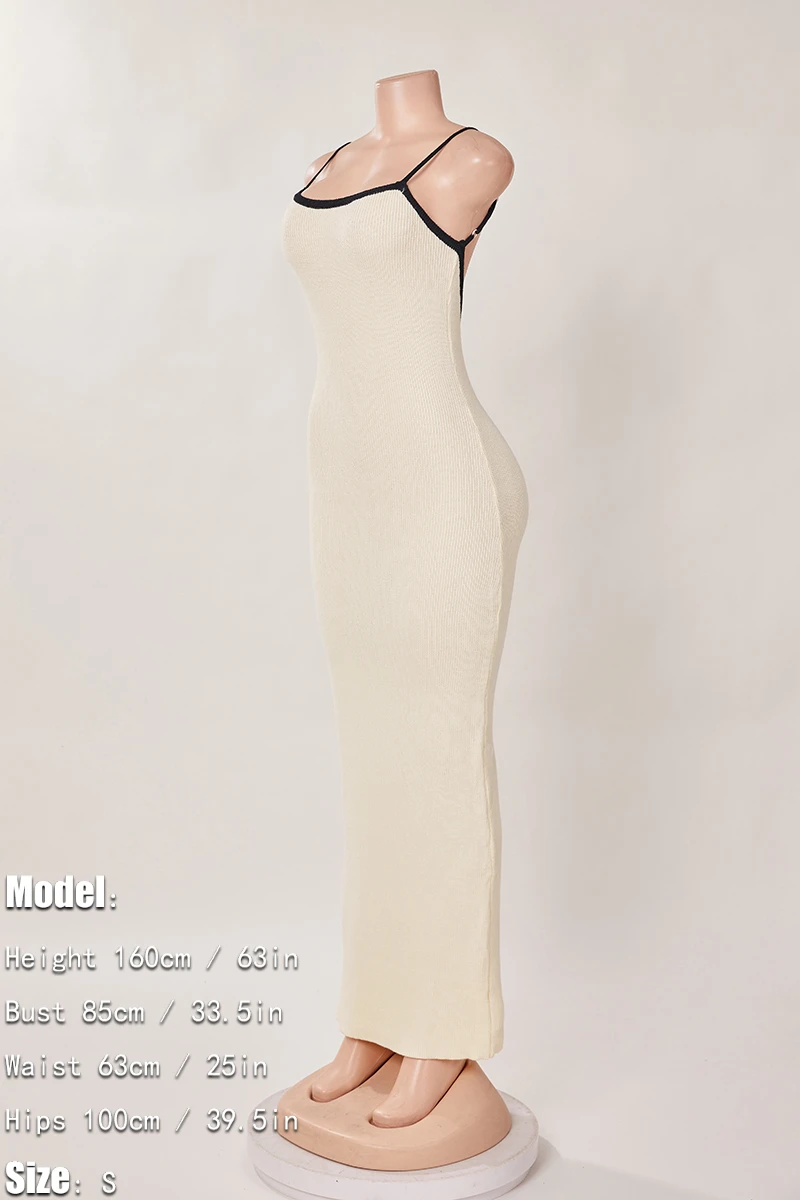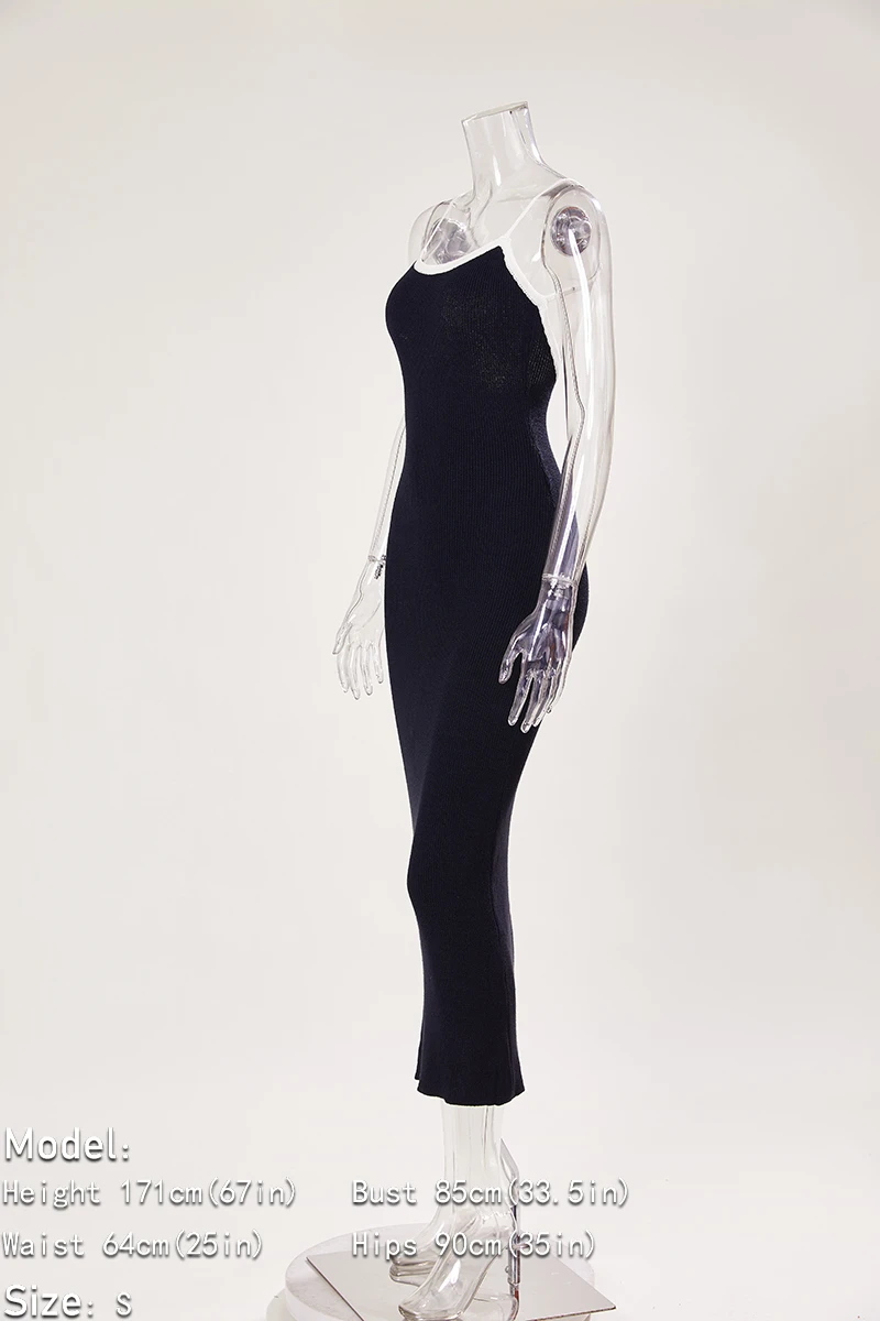 Sexy slight stretch knitted two colors backless sling maxi dress