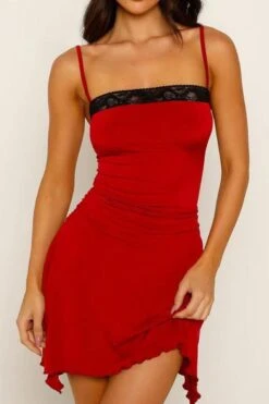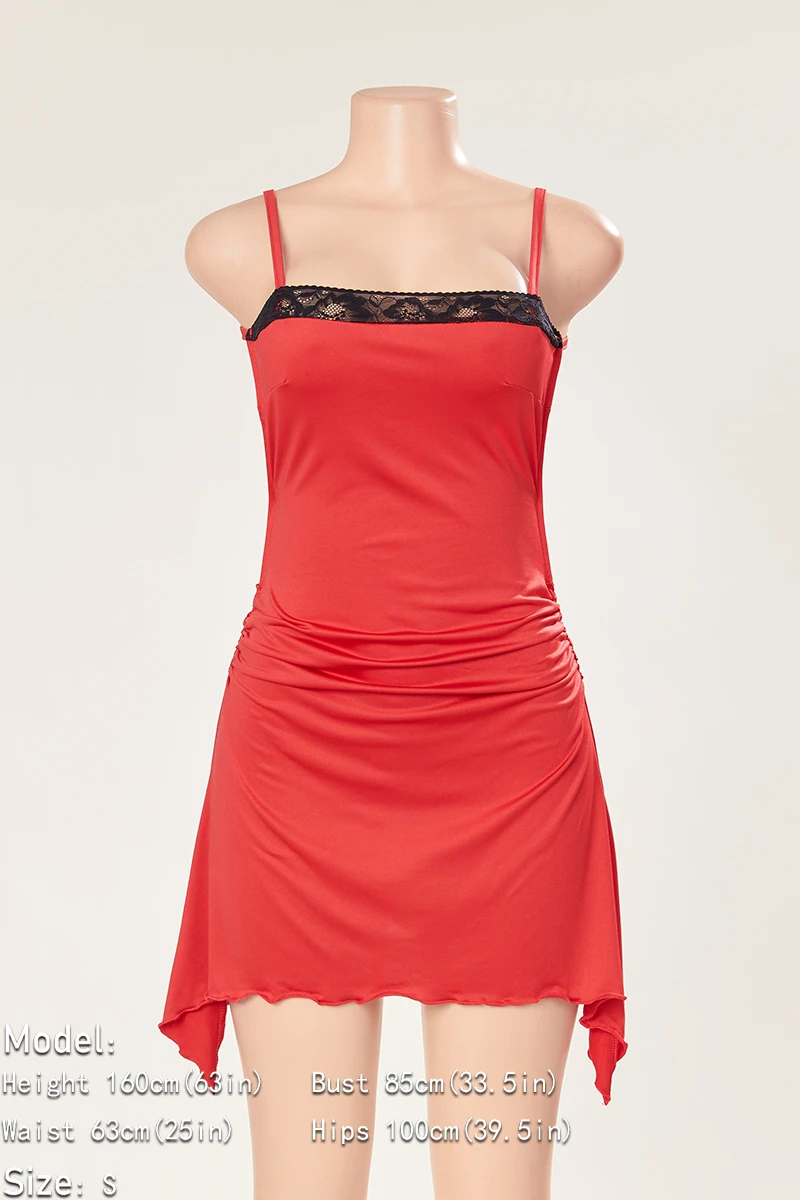 Sexy slight stretch lace edge sling backless mini dress
