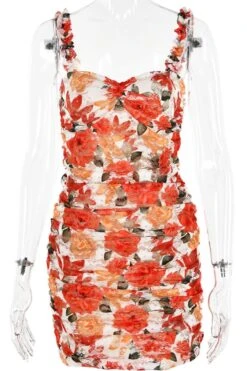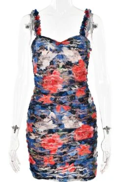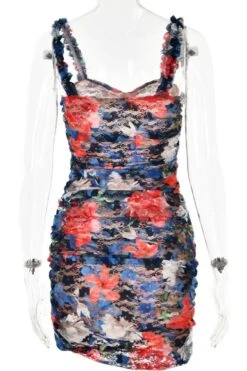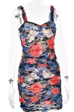 Sexy slight stretch lace flower batch printing sling slim mini dress