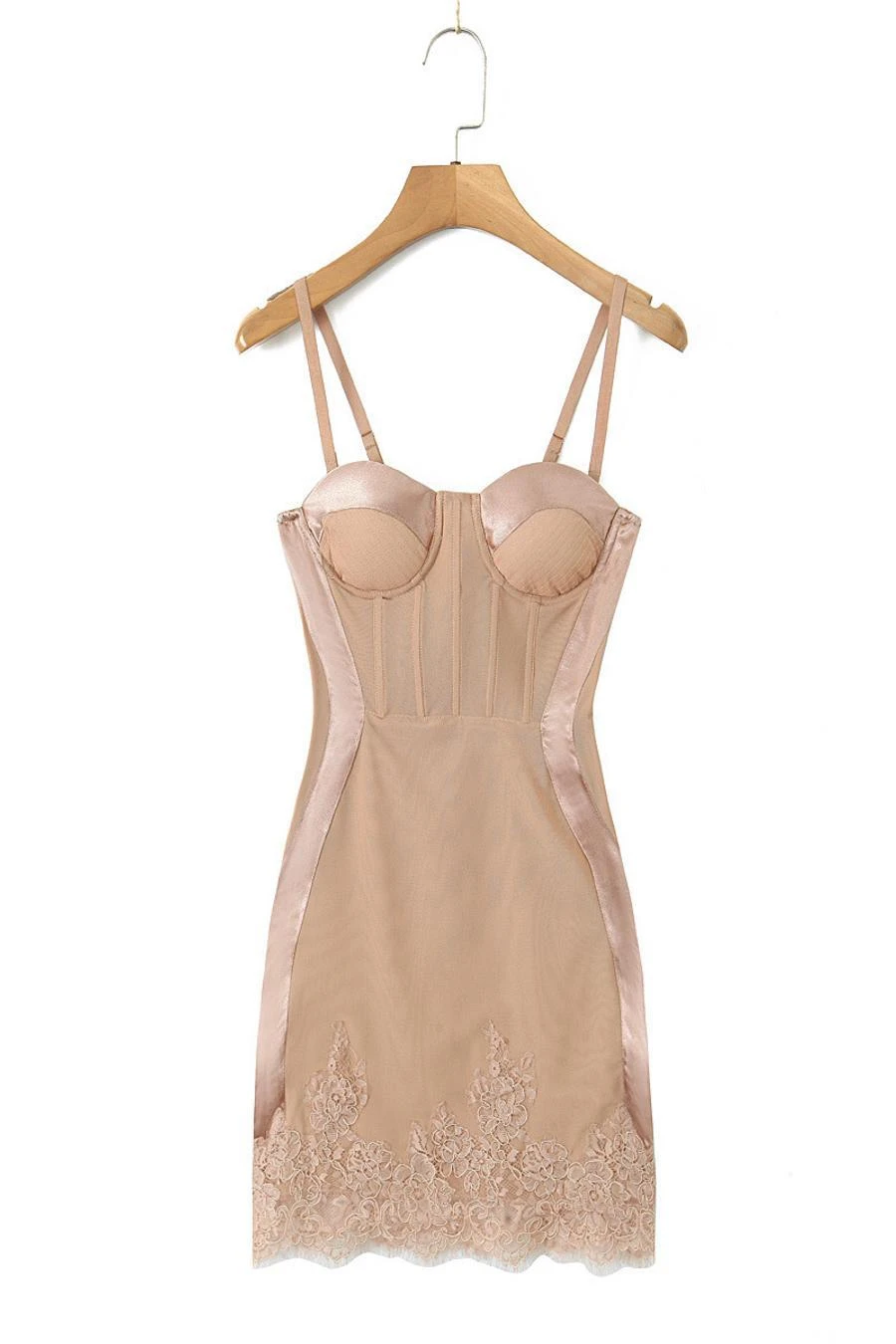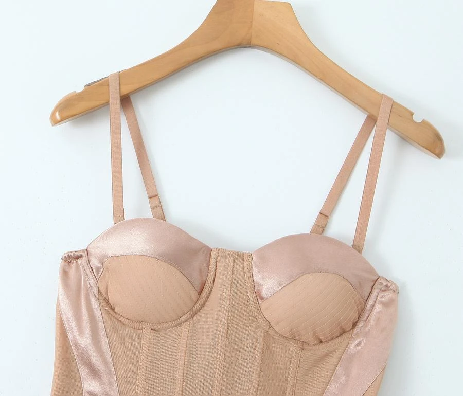 Sexy slight stretch lace patchwork sling padded rubber bone slim mini dress