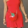 Sexy slight stretch lace-up cut out rhinestone decor shirrings slim mini dress