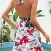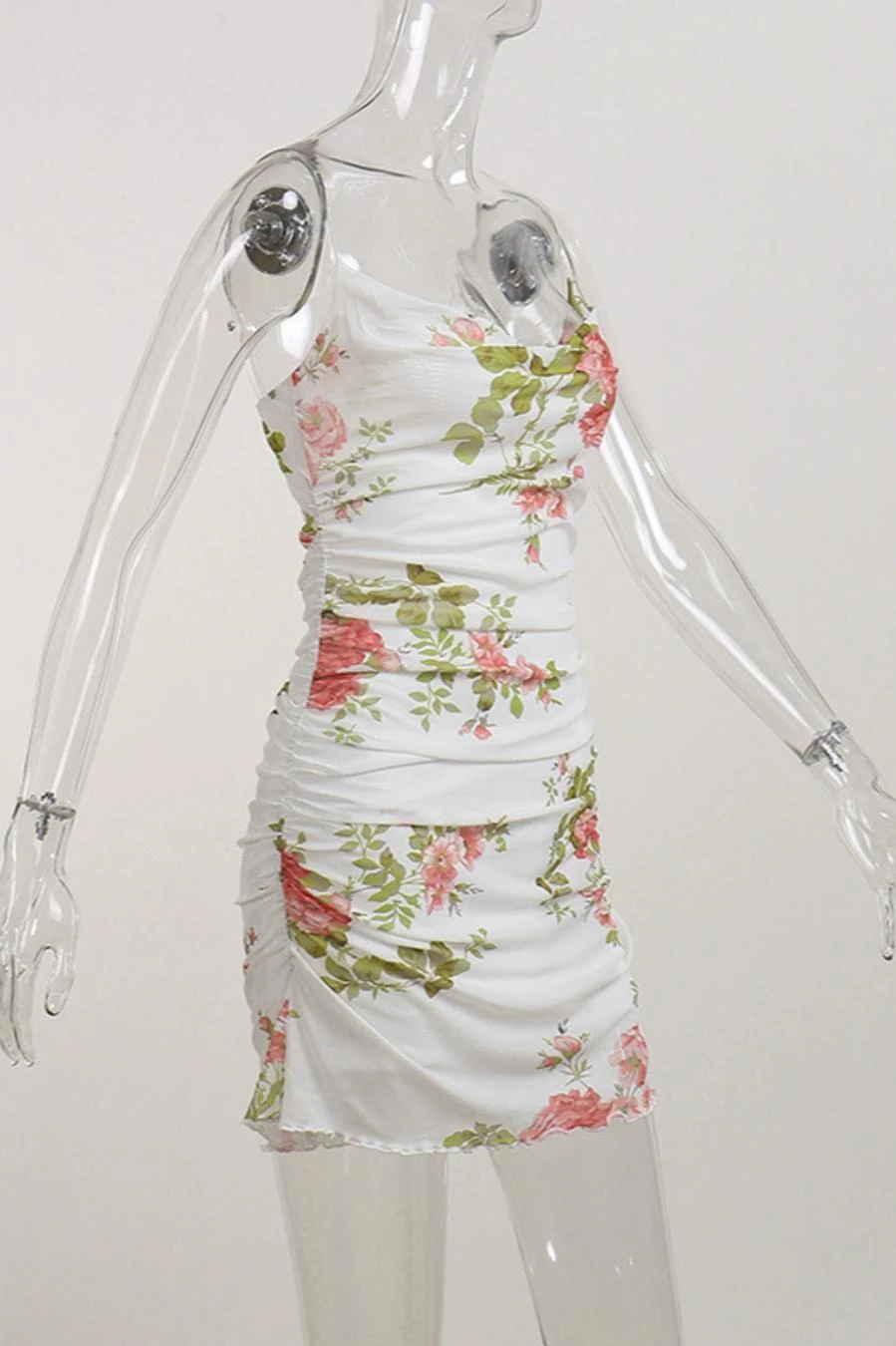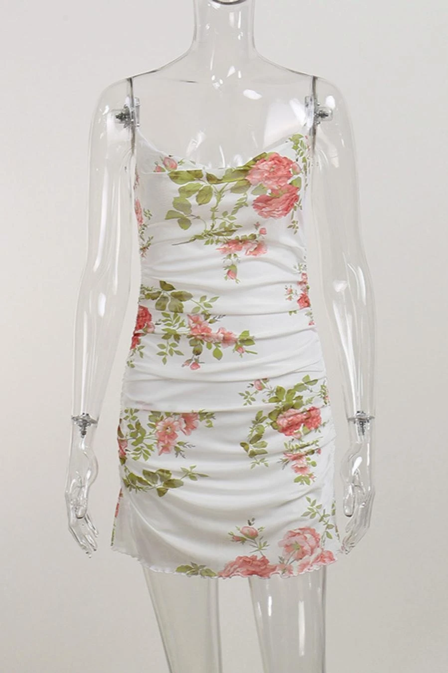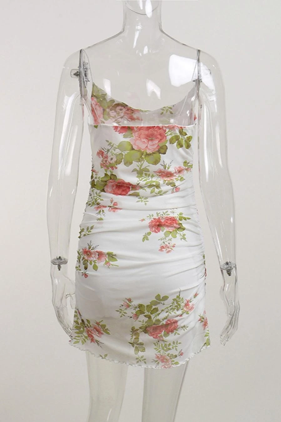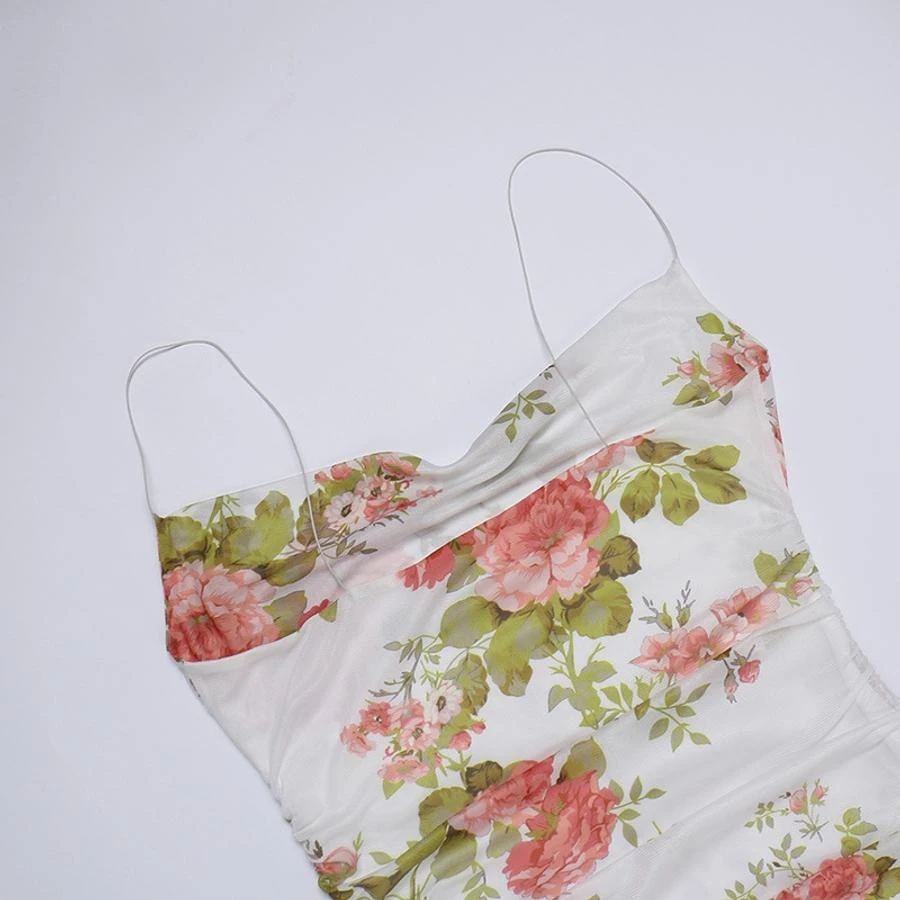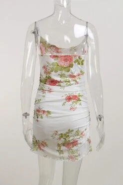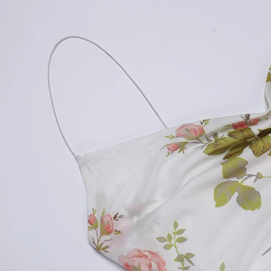 Sexy slight stretch mesh knitting flower with lining mini dress