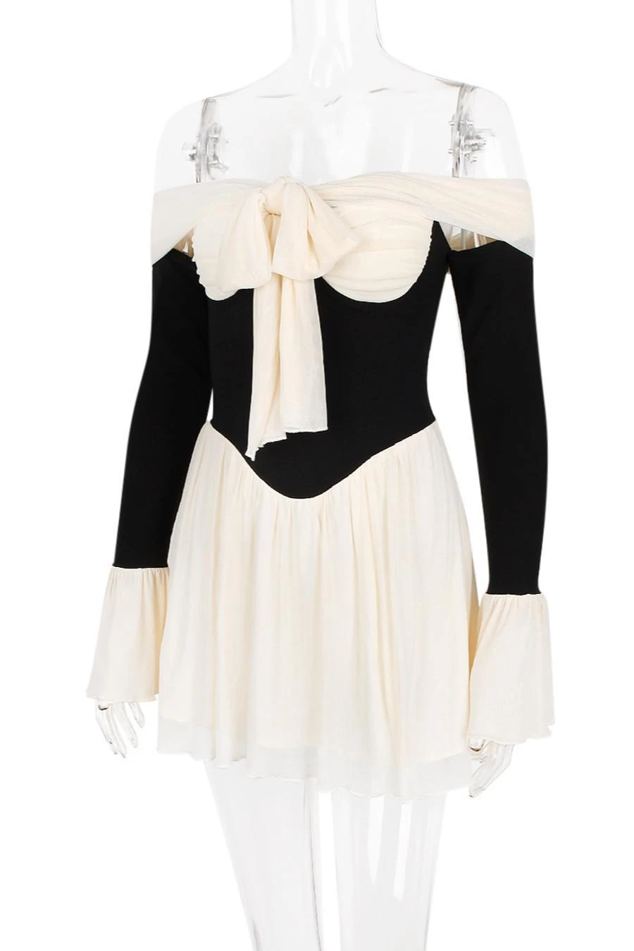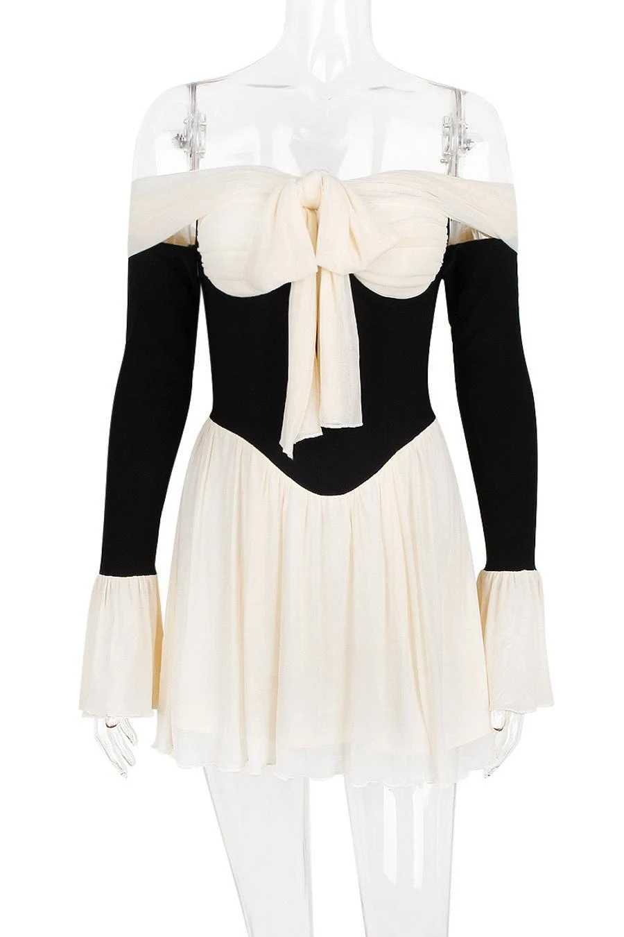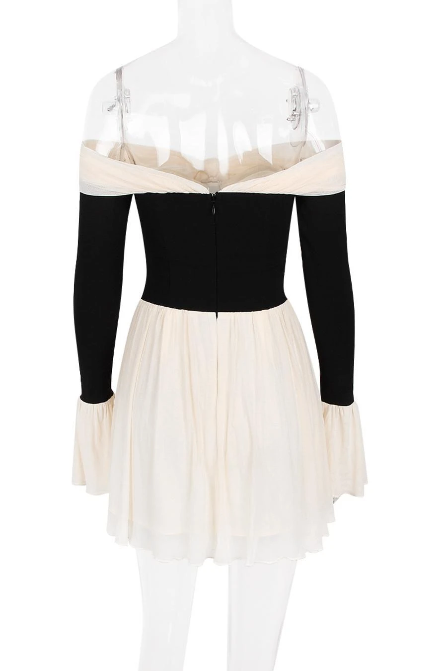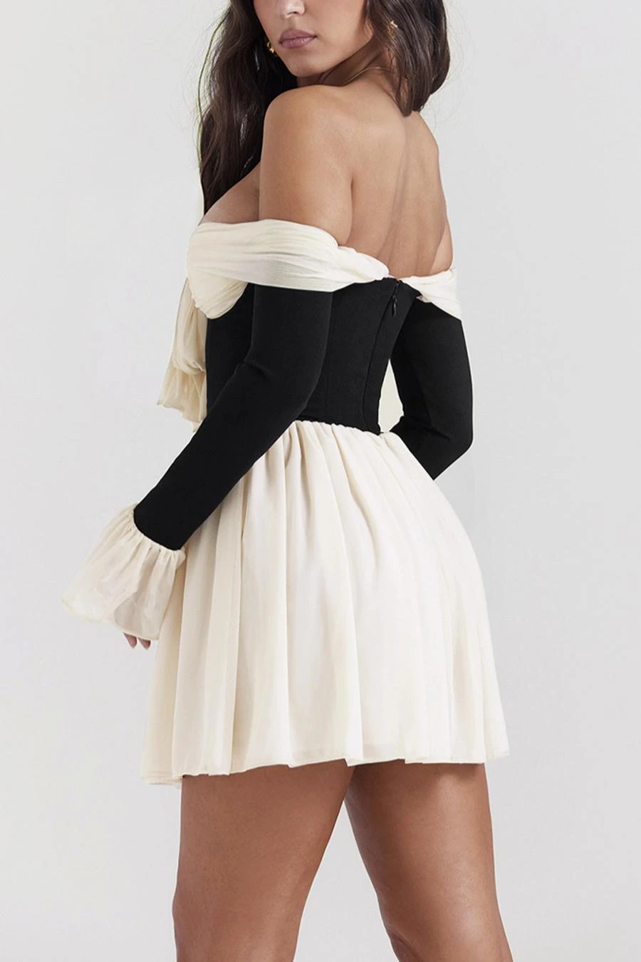Sexy slight stretch mesh patchwork one-shoulder high-quality mini dress
