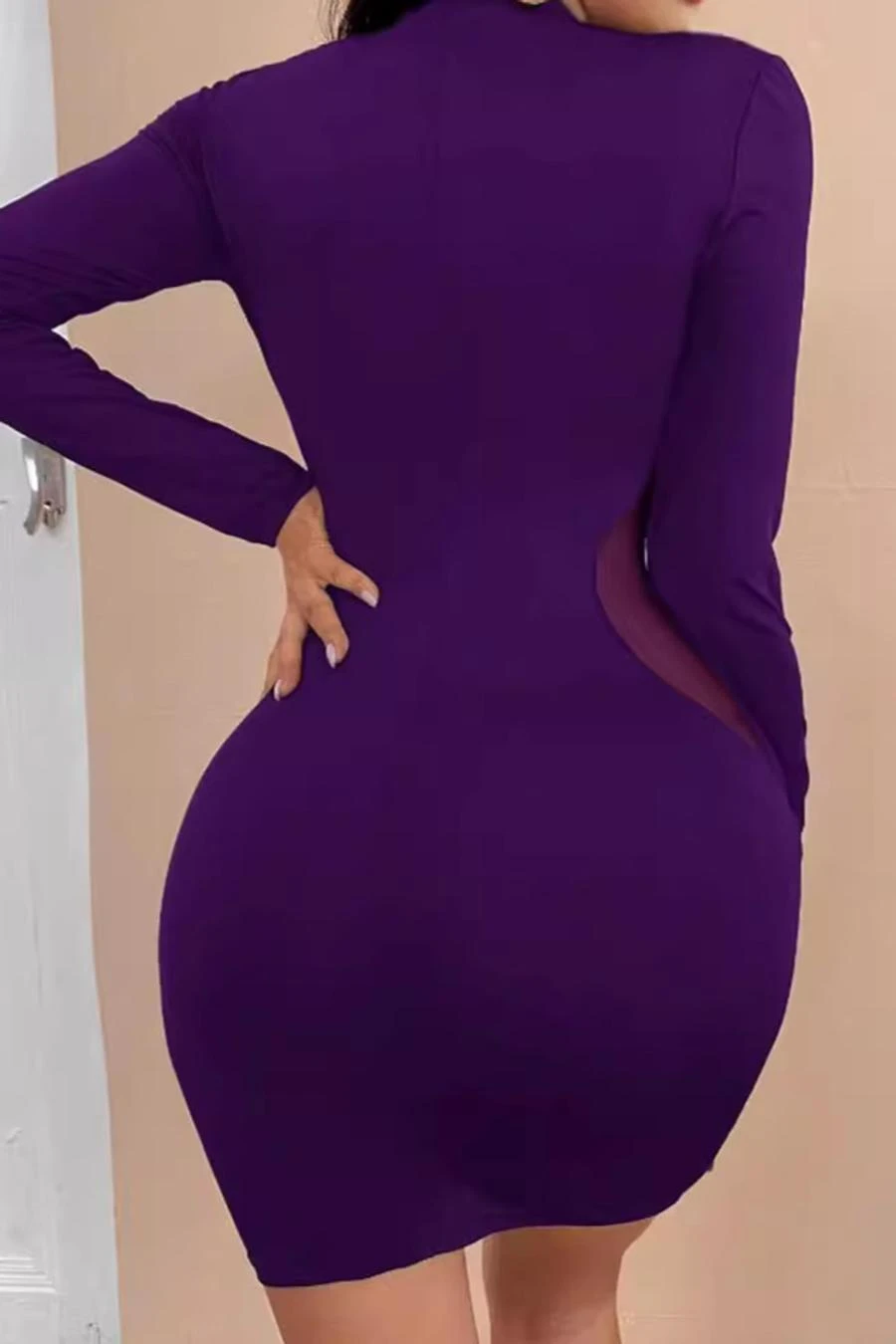 Sexy slight stretch mesh patchwork see-through tight mini dress