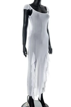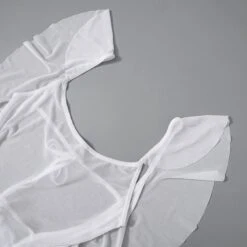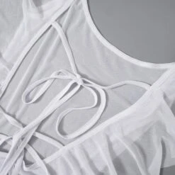 Sexy slight stretch mesh solid color ruffle backless lace-up maxi dress