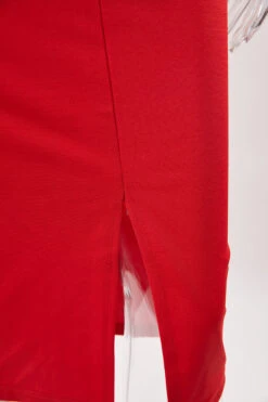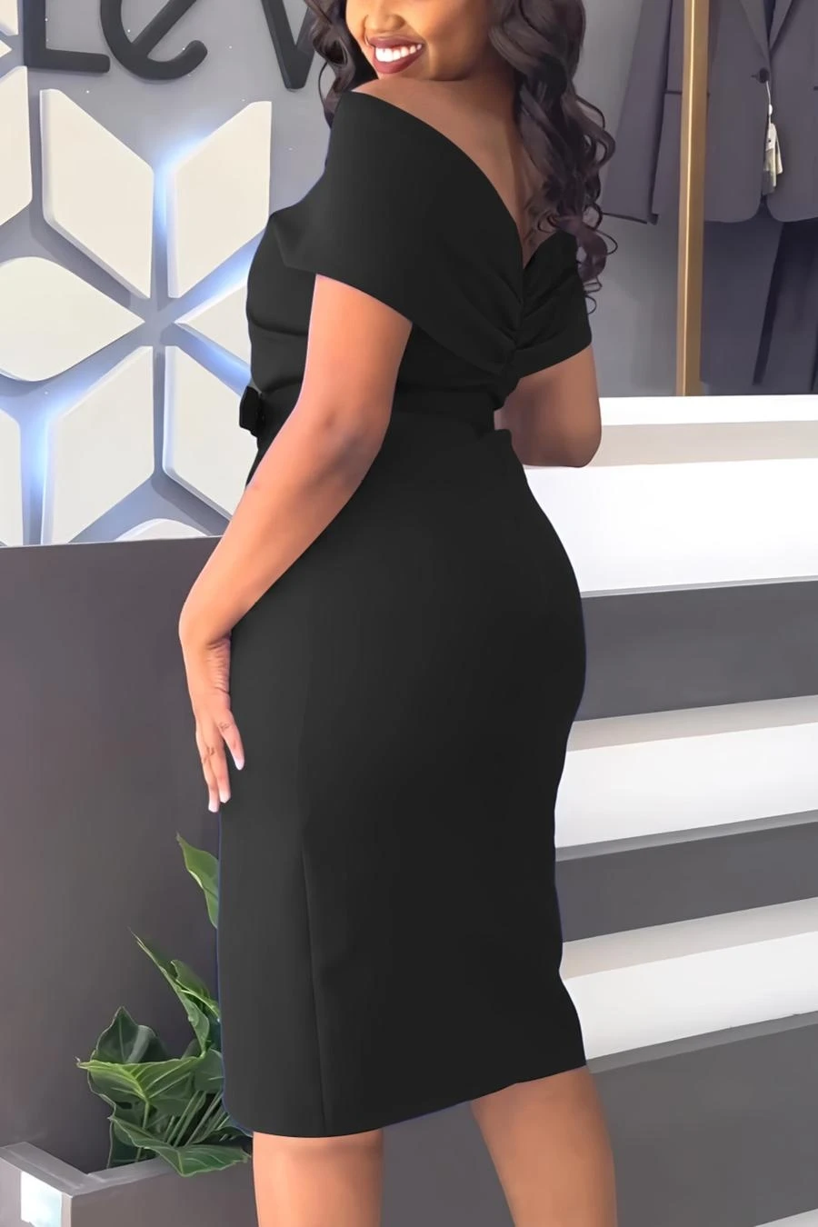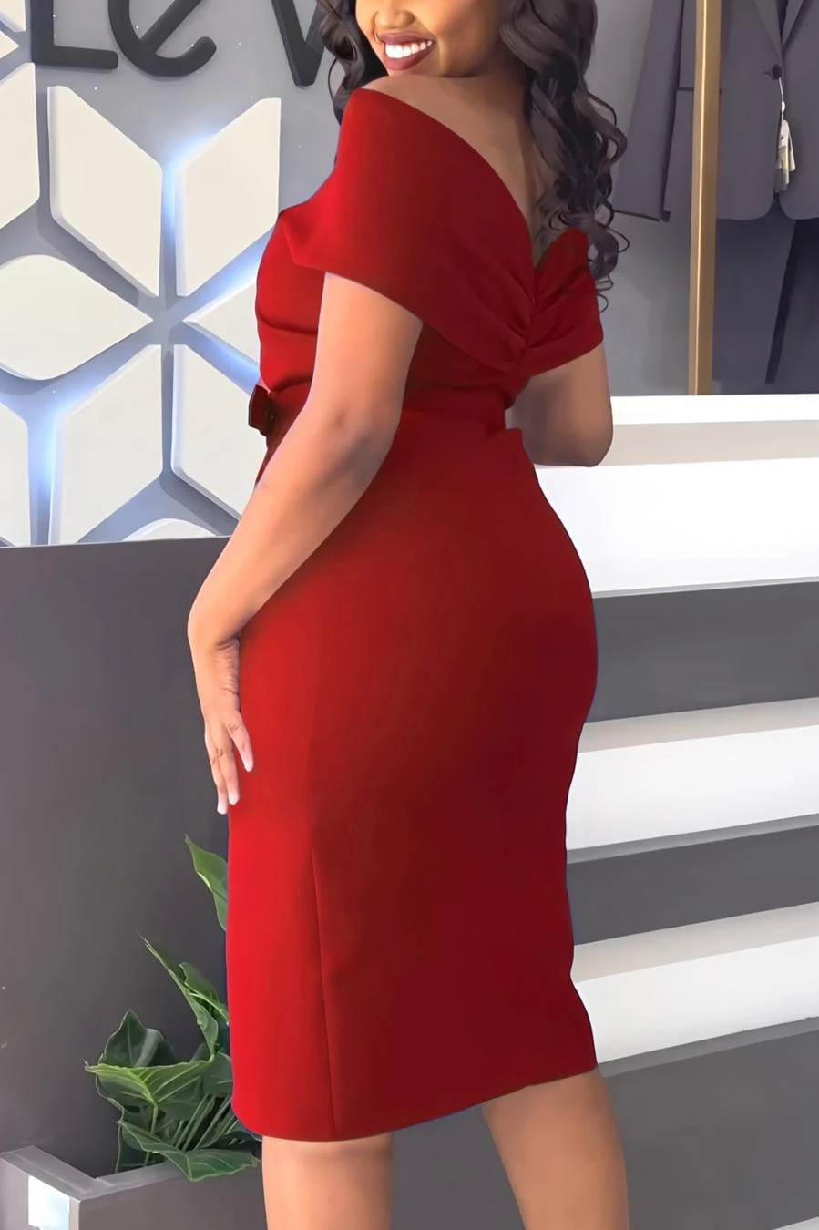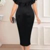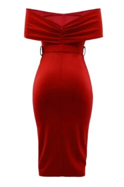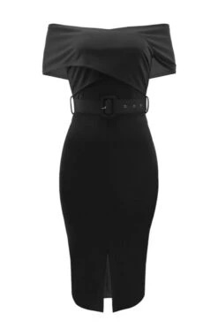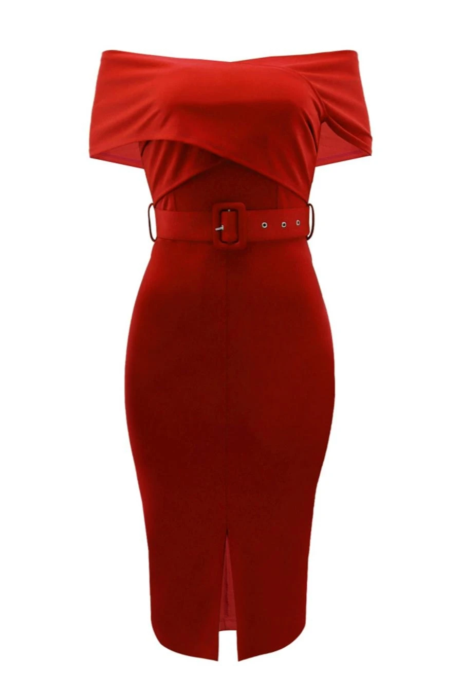 Sexy slight stretch off shoulder solid color with belt slit midi dress