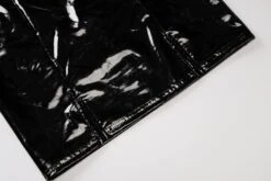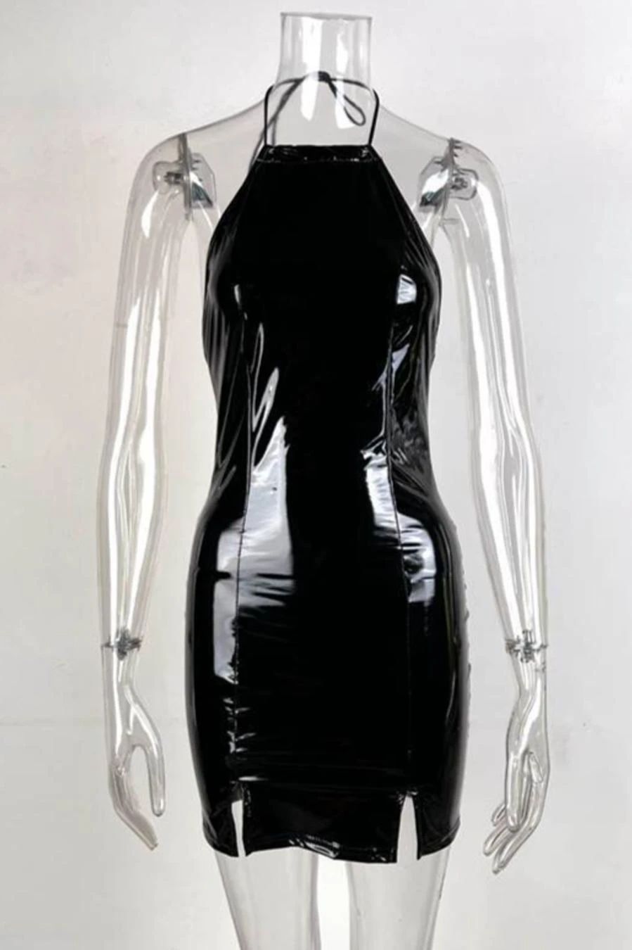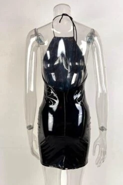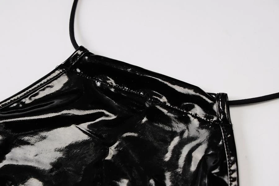 Sexy slight stretch pu leather fabric halter-neck lace-up mini dress