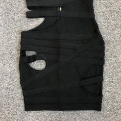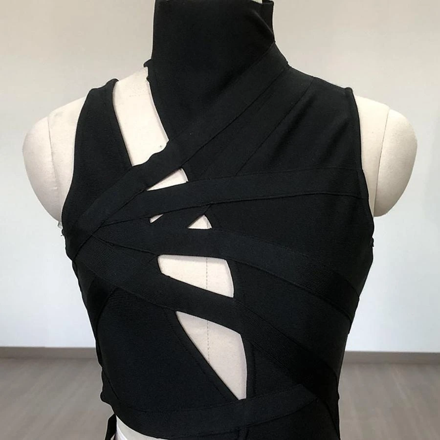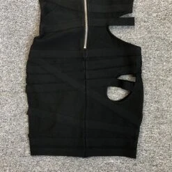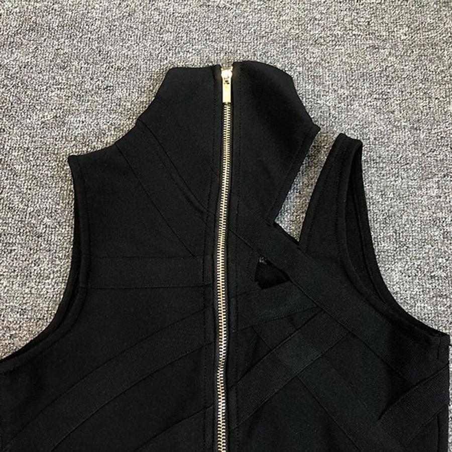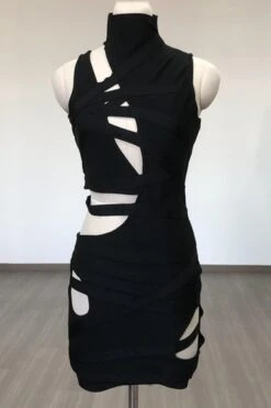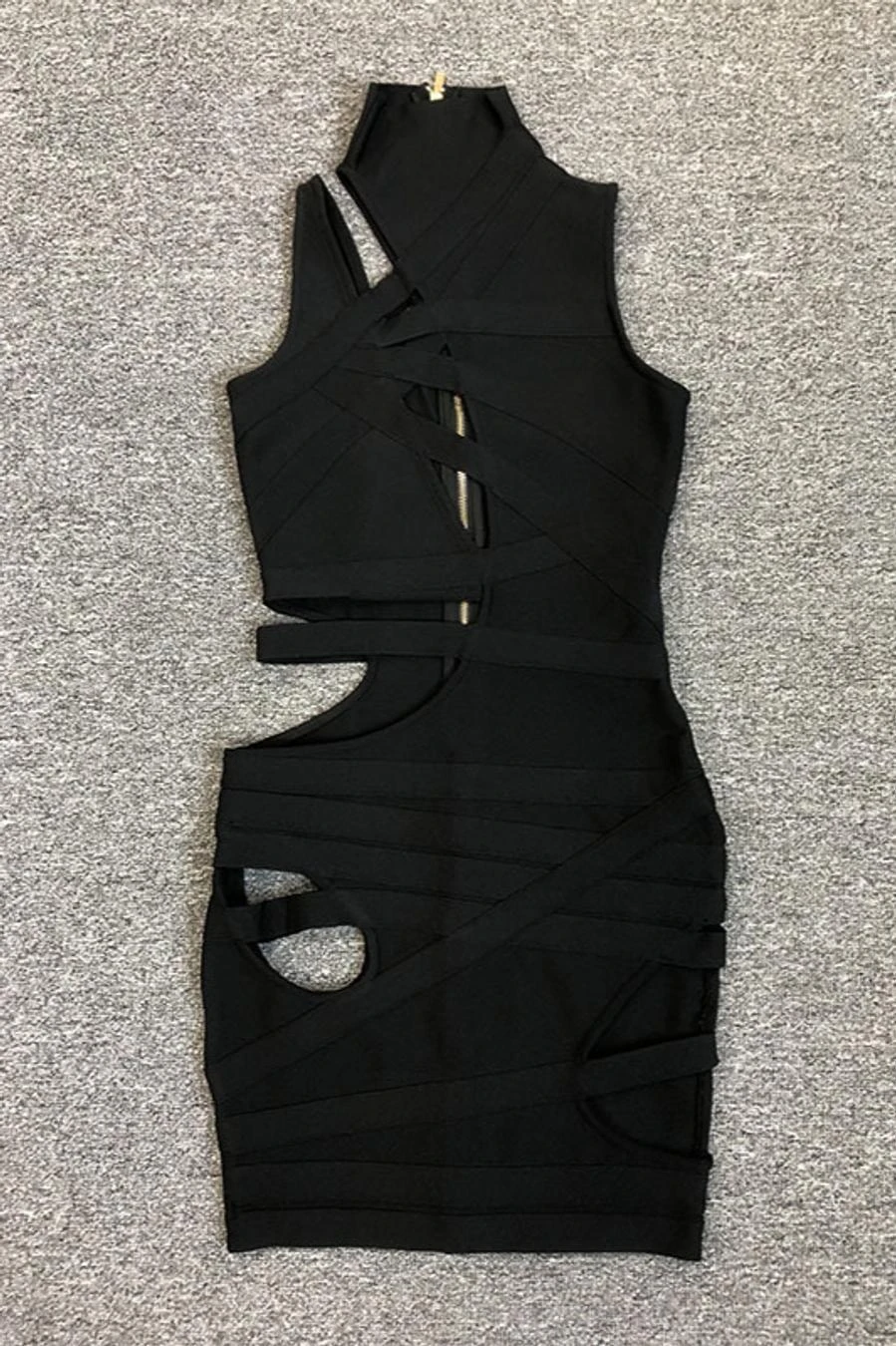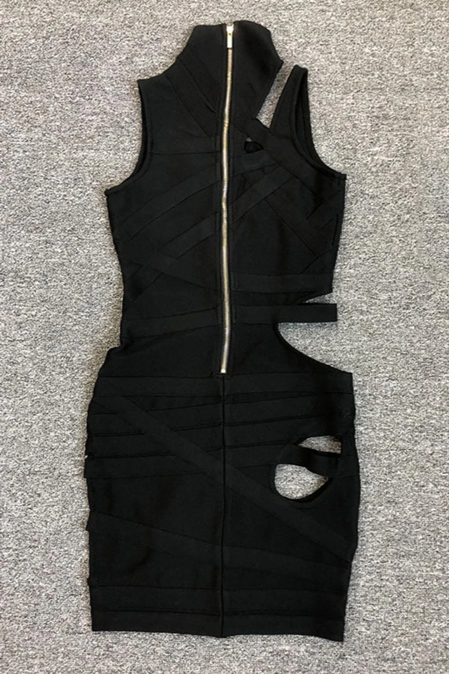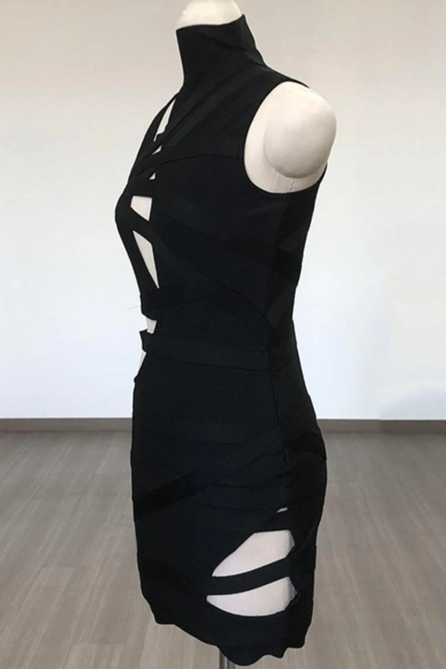 Sexy slight stretch pure color high-neck hollow bodycon mini dress