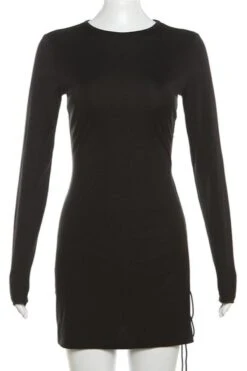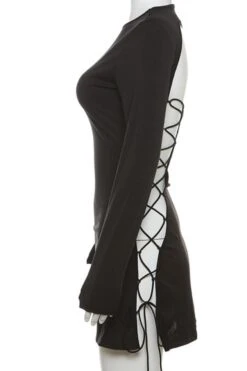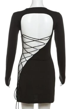 Sexy slight stretch pure color hollow lace-up mini dress